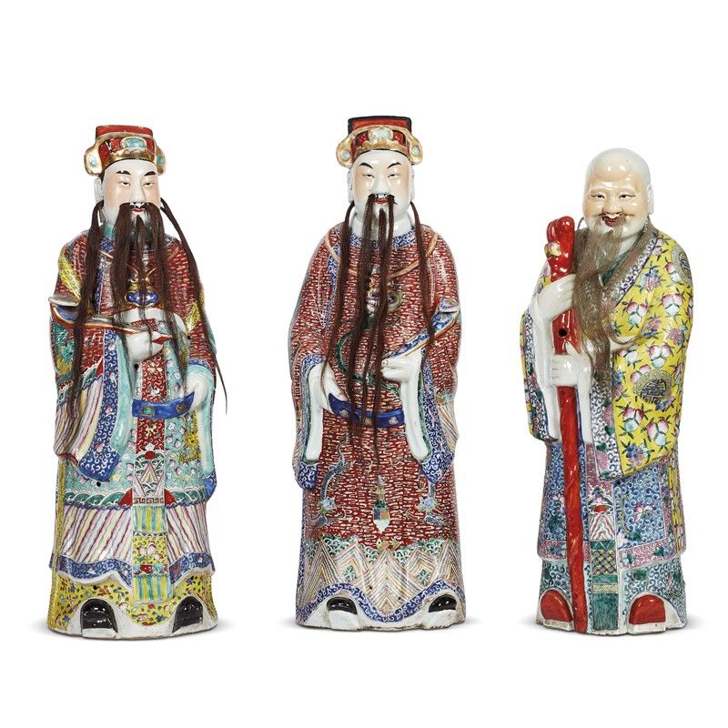 清 十九至二十世纪 粉彩三星像 禄 禄 寿 高66,63,61厘米
