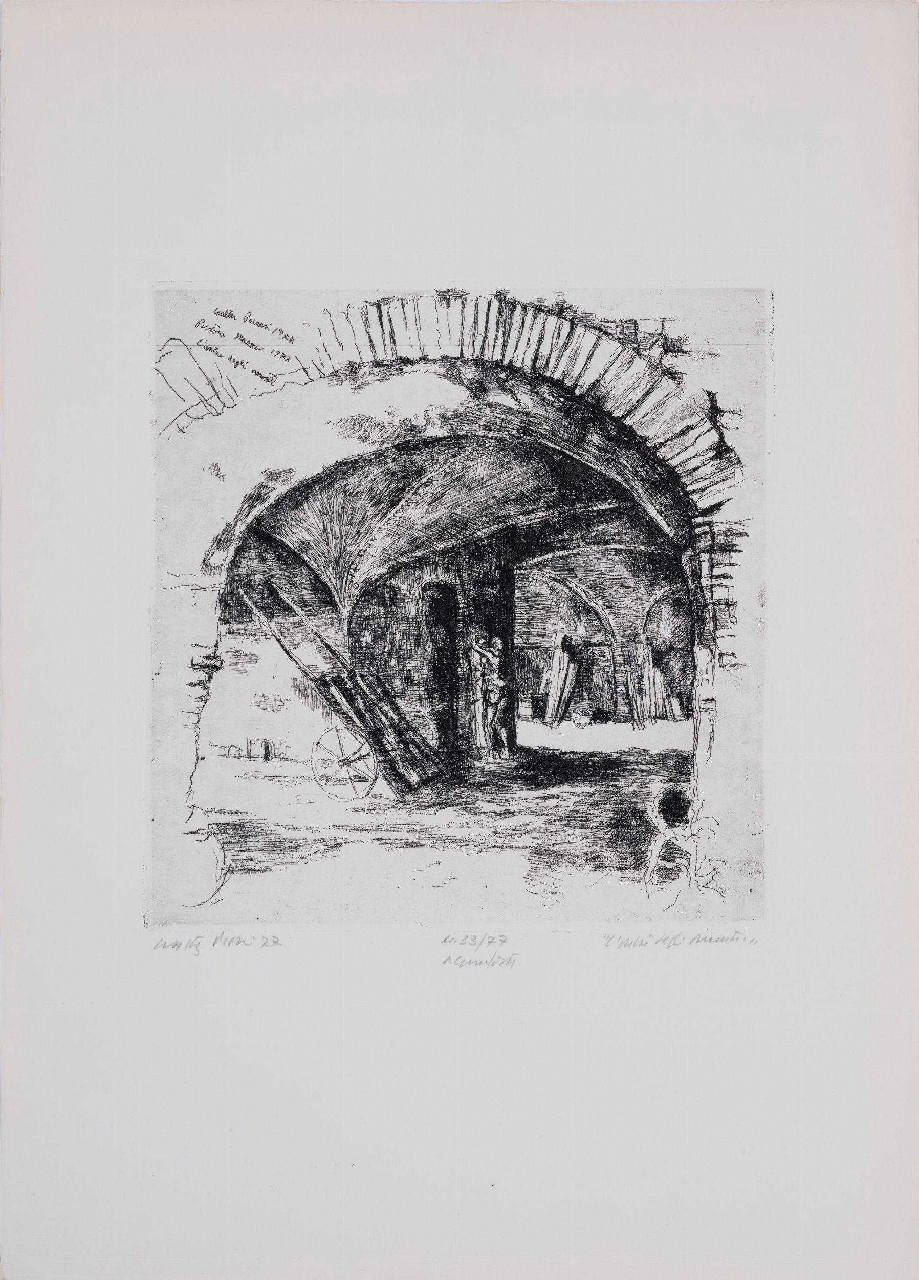 acquaforte es. 33/77, cm. 50x35 (foglio) e 24x24,5 (lastra)
