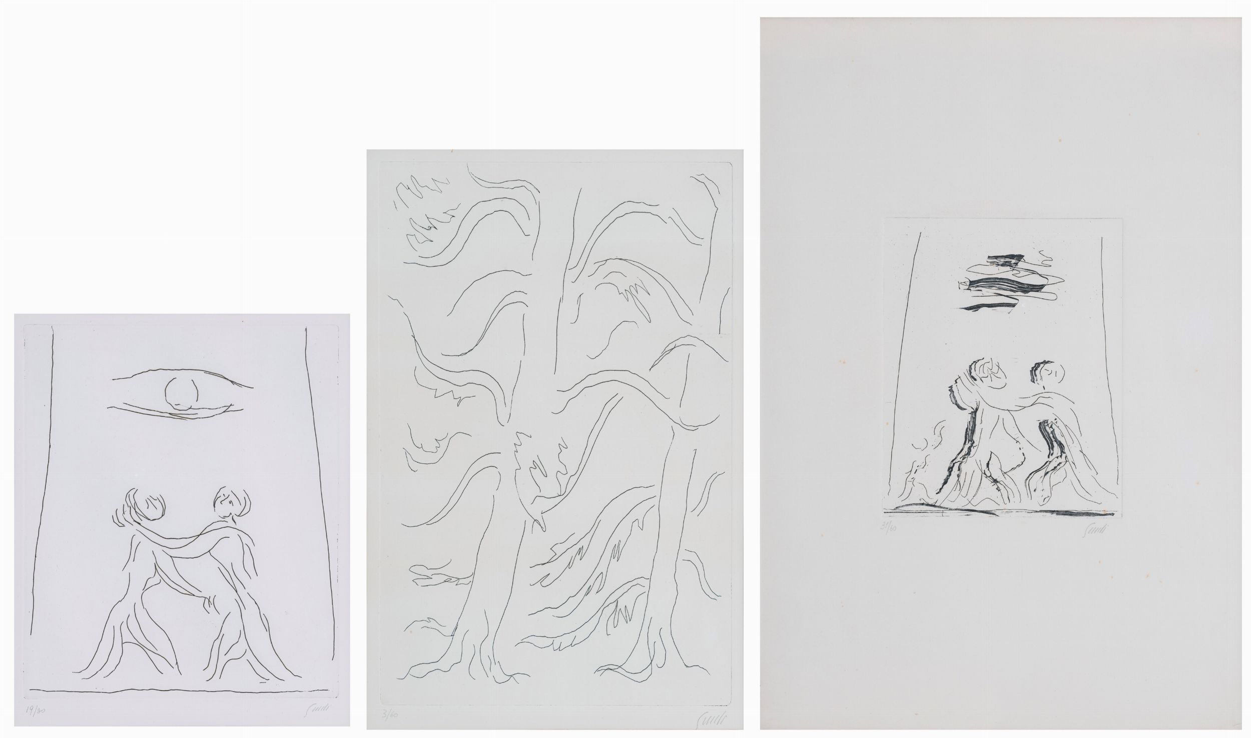 lotto di 3 acqueforti, cm. 26x23, 34x24, 28x24 (lastre)
