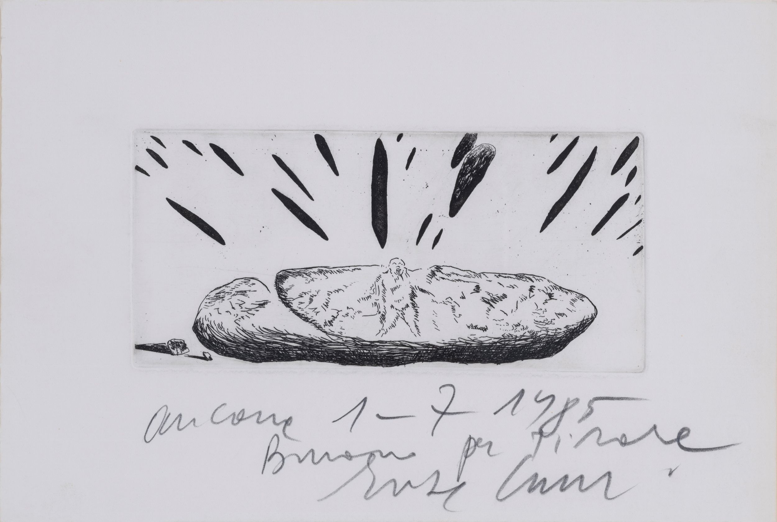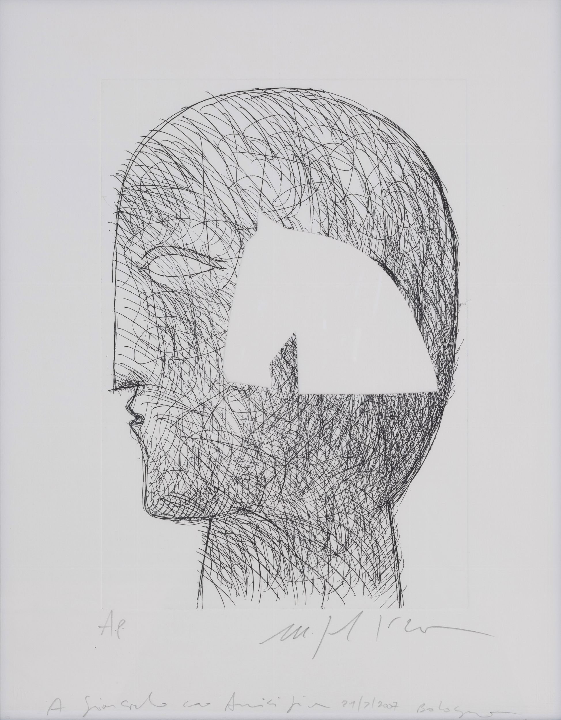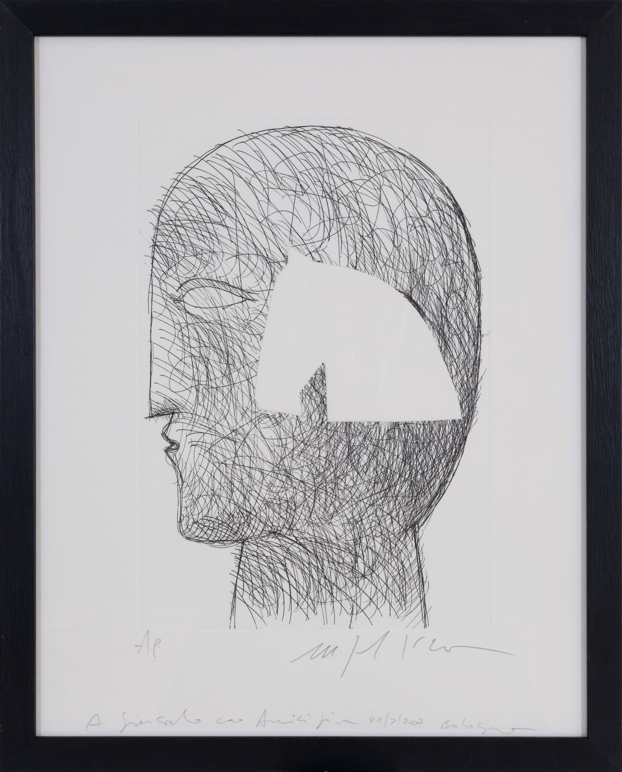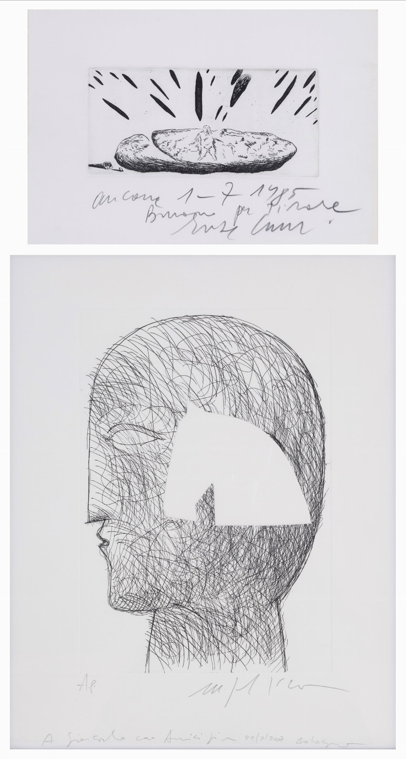 senza titolo 1985, acquaforte bon a tirer cm. 9x19,5 (lastra) - 20x29 (foglio) firma data e tiratura in bassoProfilo 2007, acquaforte es. A.P. 35,5x24,5 (lastra) - 50x40 (foglio) firma, data, tiratura e dedica ad personam in basso