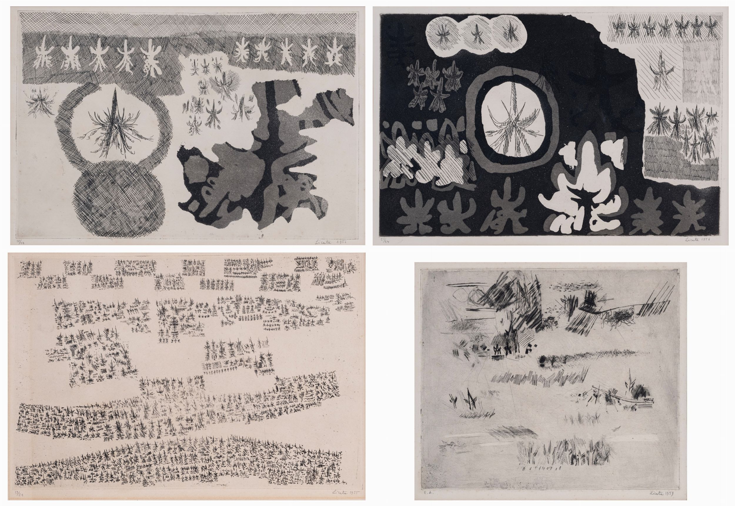 lotto di 4 acqueforti, cm. 23,5x35 - 23,5x37 - 21x27