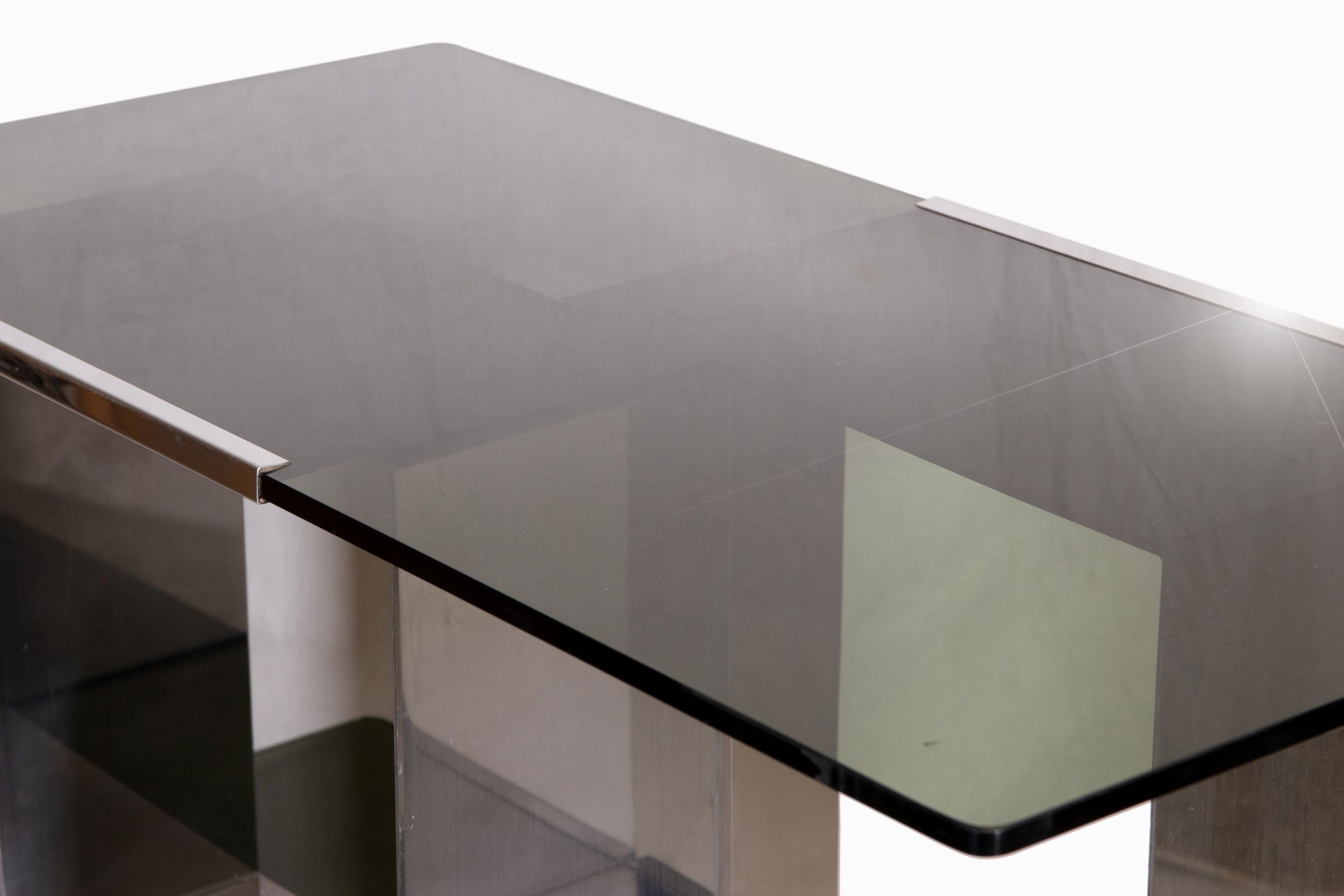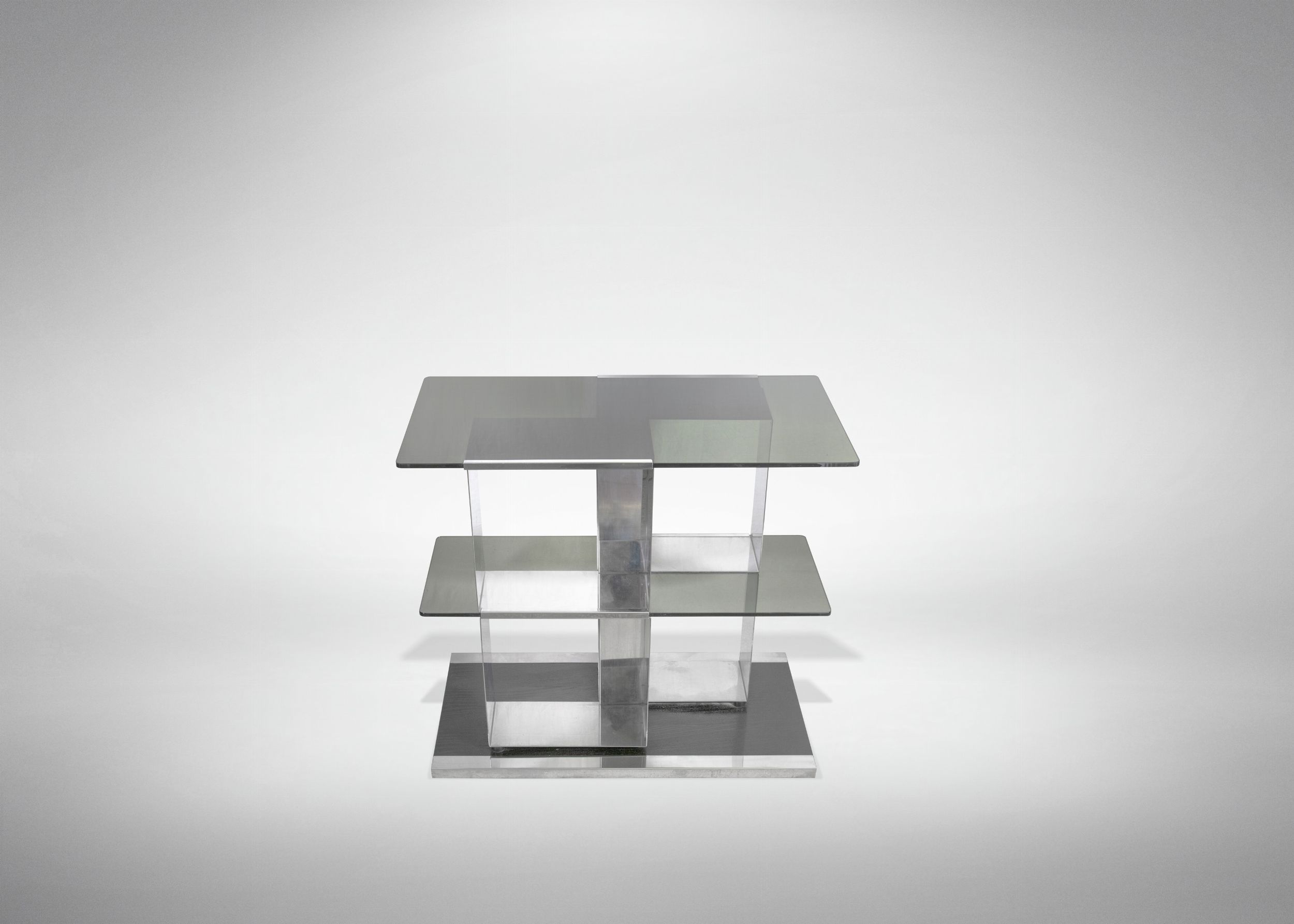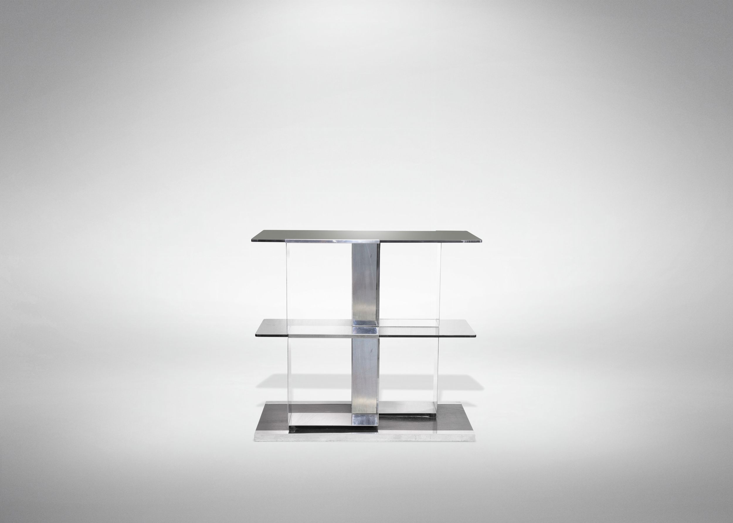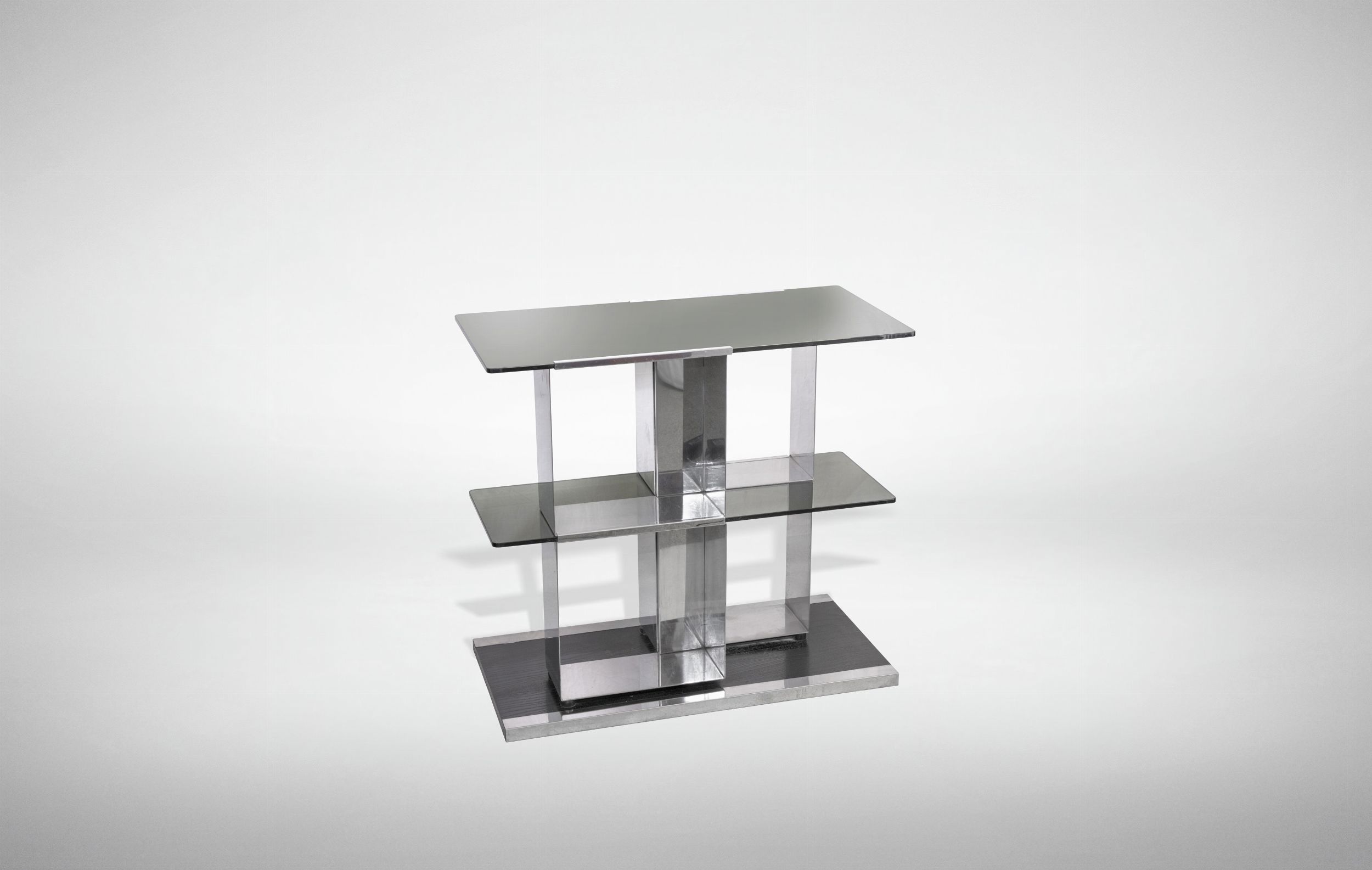 1970 Elegante armadietto per conservare i Vinili tipico dello stile francese anni '70. Realizzato in legno, acciaio e con ripiani in vetro.