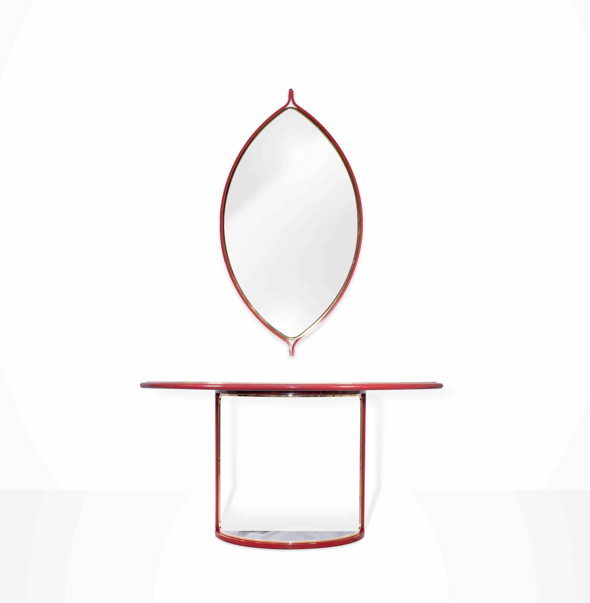 1970s Metallo laccato, ottone e vetro. Raro esemplare in rosso, nero e giallo oro