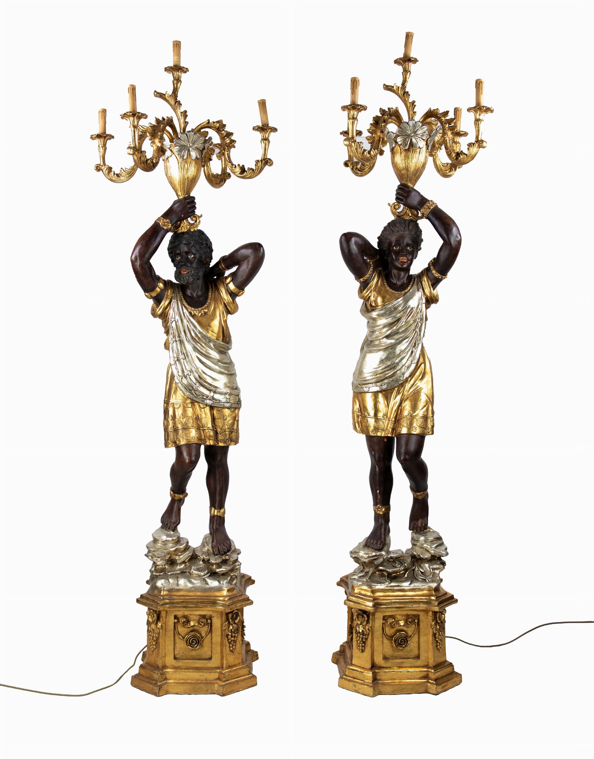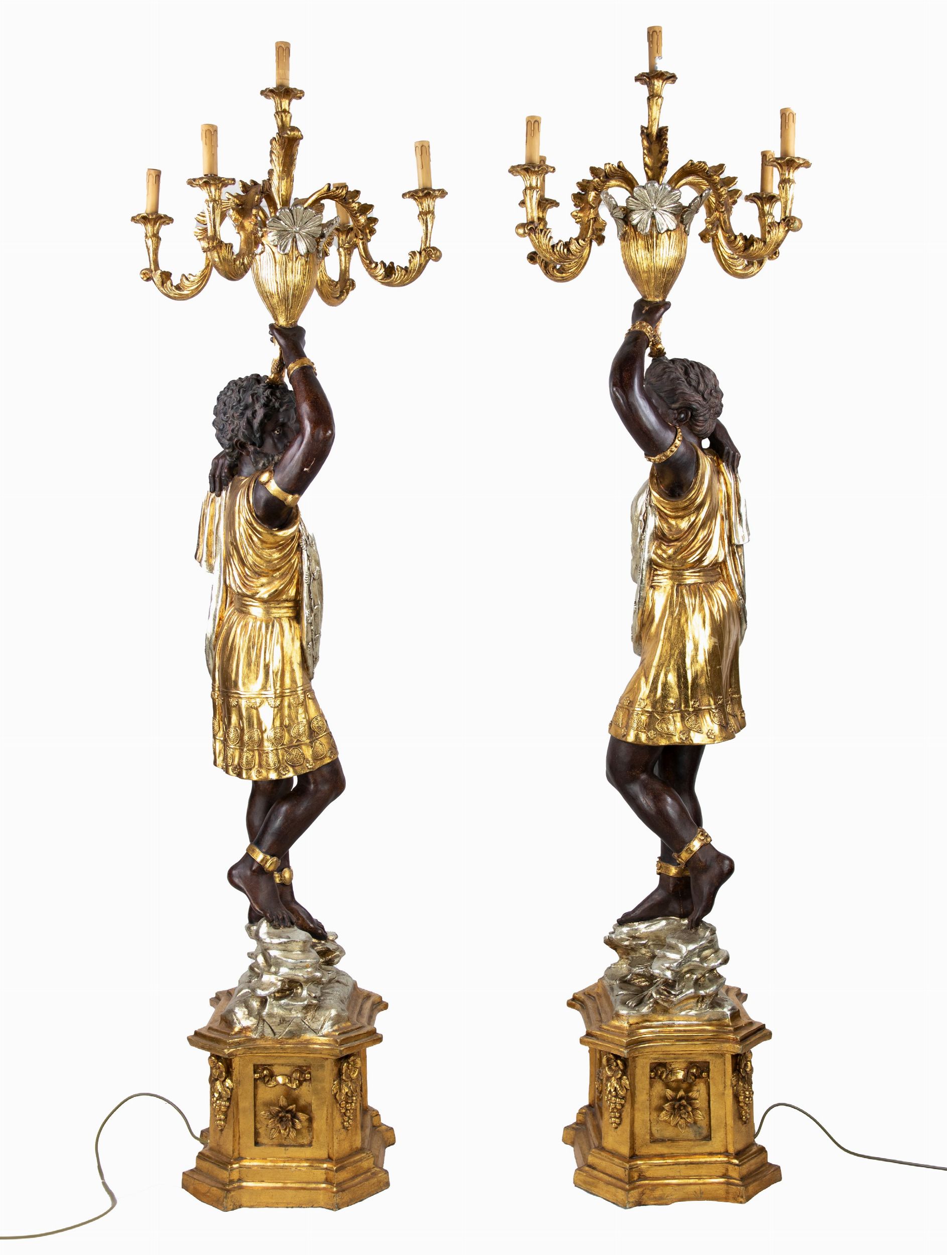 Coppia di lampade da terra con mori veneziani in stile barocco
