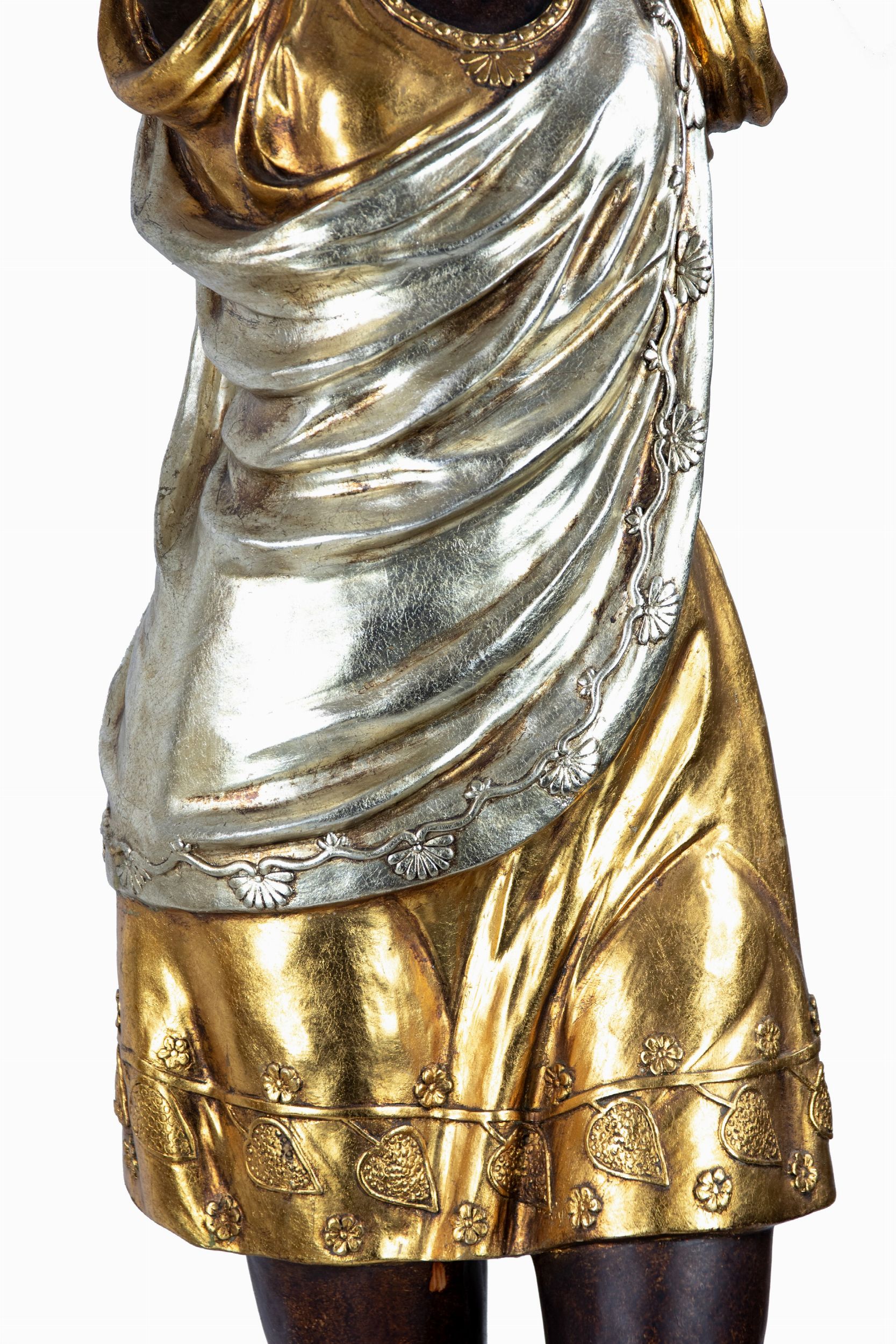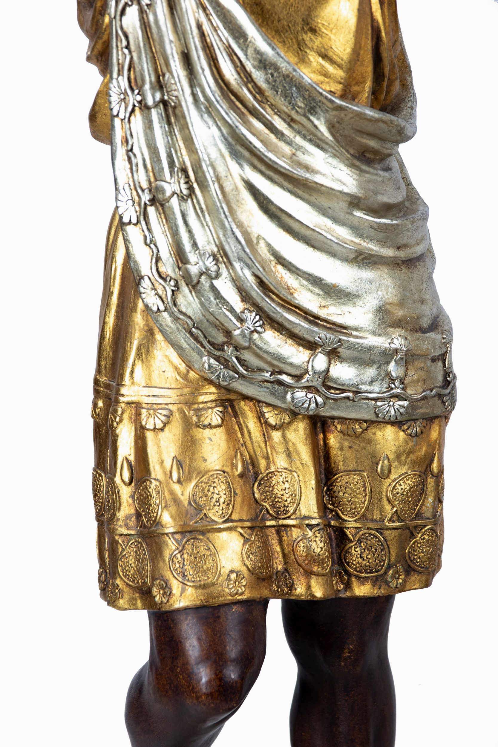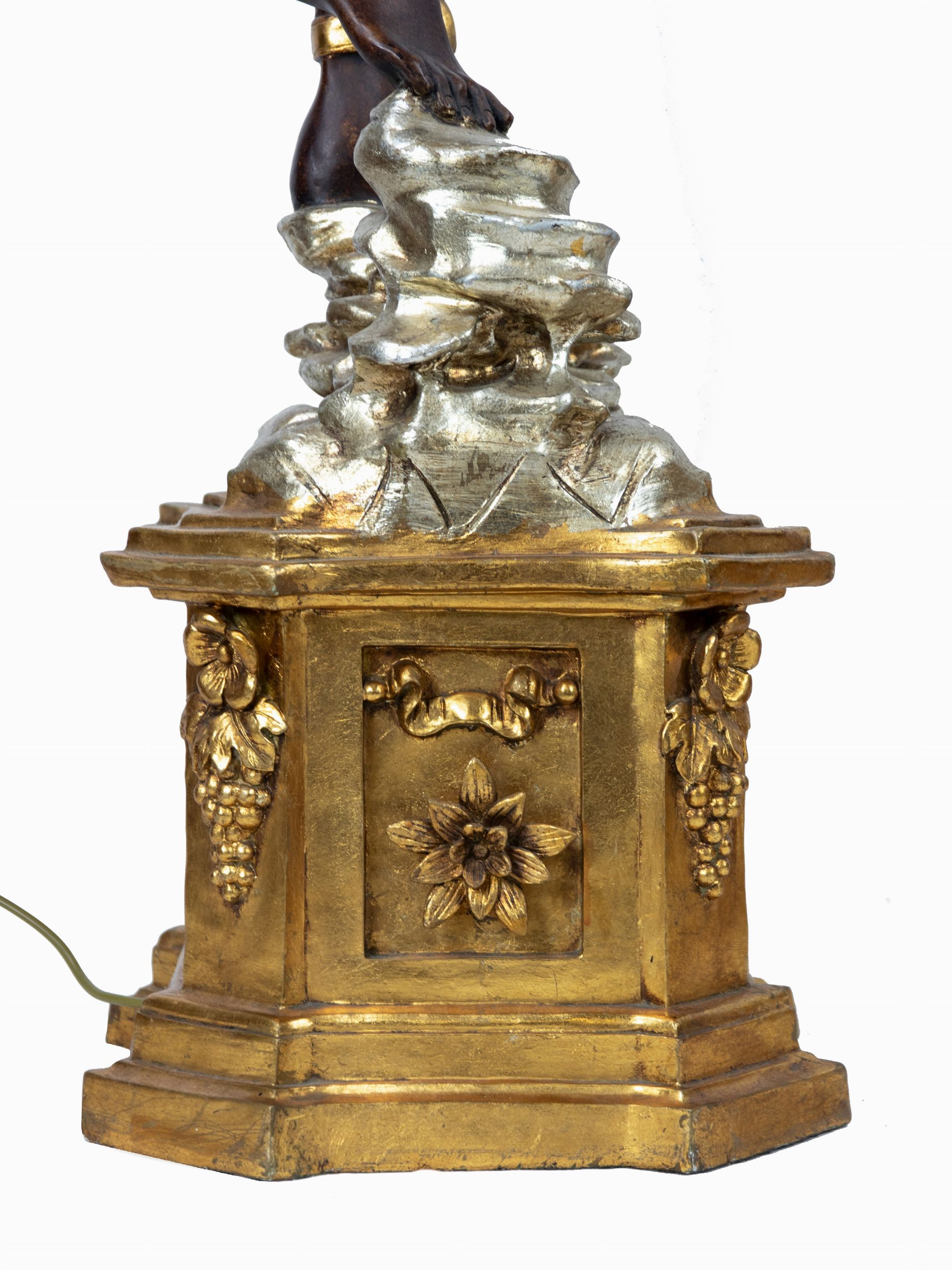 228x43x70 Metà del XX secolo Le statue rappresentano due Mori coloniali (in scala 1 a 1) che reggono un candelabro scolpito elettrificato con 10 luci. Le statue sono su un piedistallo (43 x 46 cm). Lievi segni d'età .