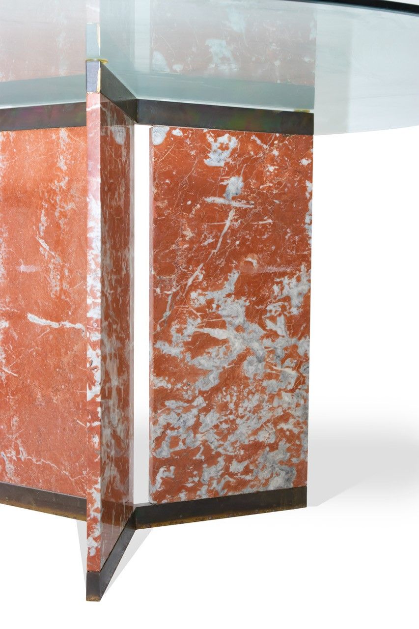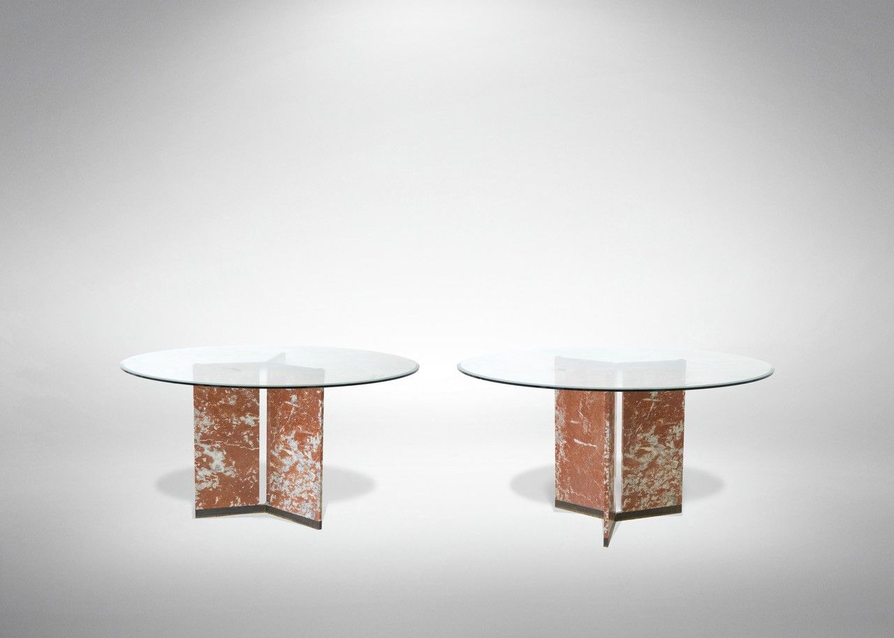 1970s Bella coppia di tavoli realizzati in marmo rosso e vetro.