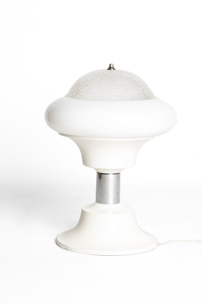 1970s Elegante lampada da tavolo in ABS (acrilonitrile butadiene stirene) e cromo.