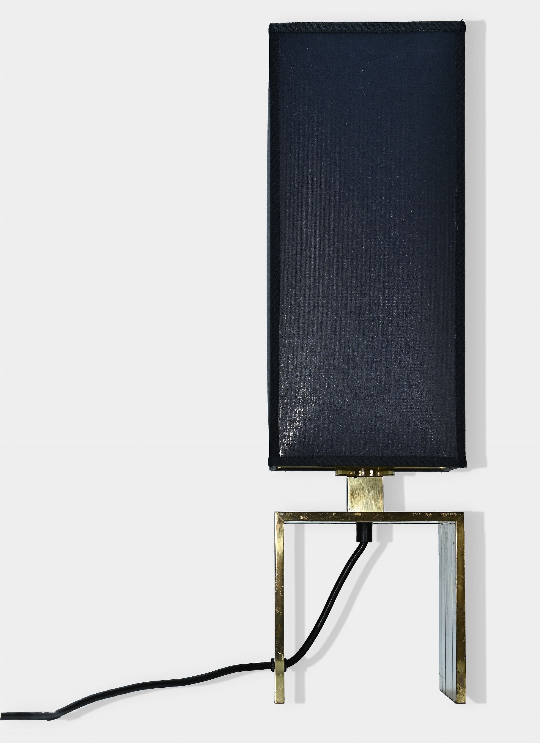 1960 Elegante lampada da tavolo con base in ottone e paralume nero.