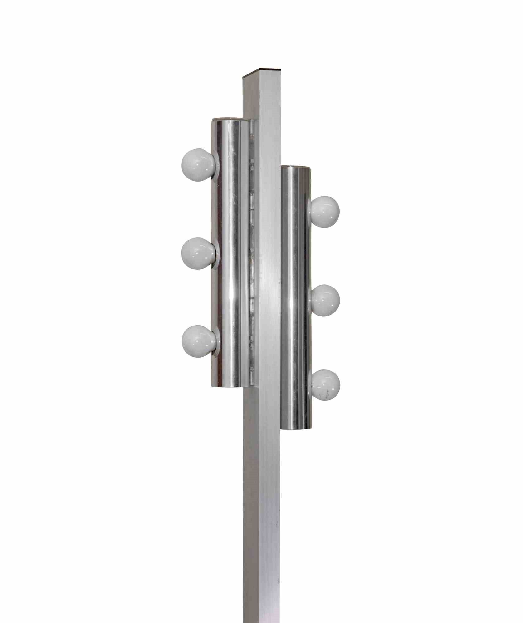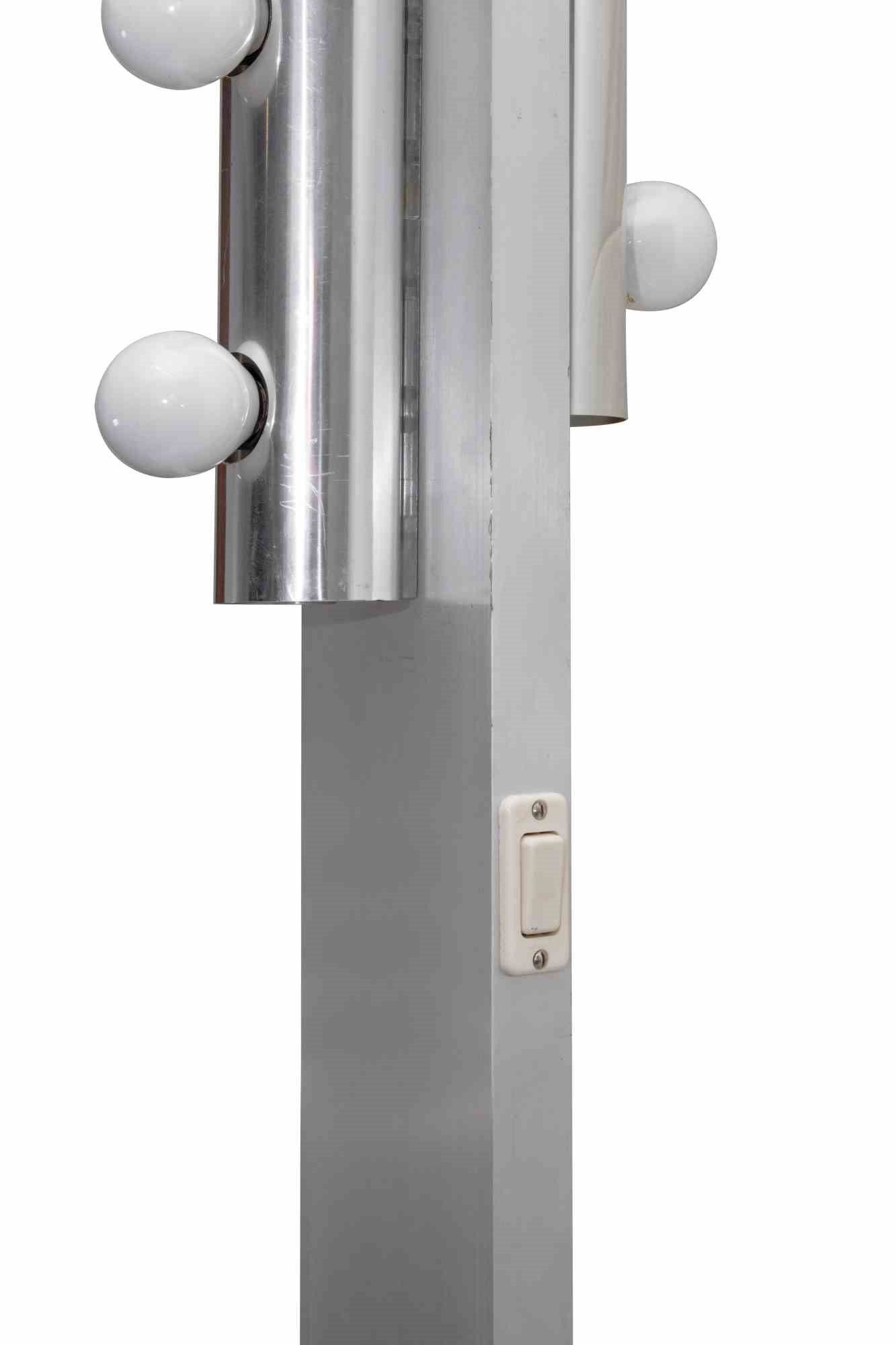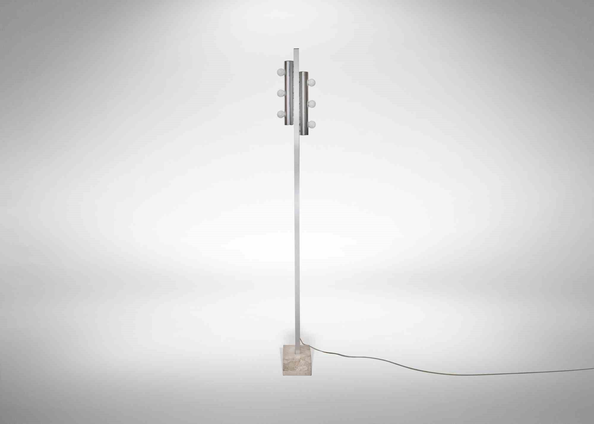 1970s Un'unica lampada da terra cromata con base in marmo e sei lampade.