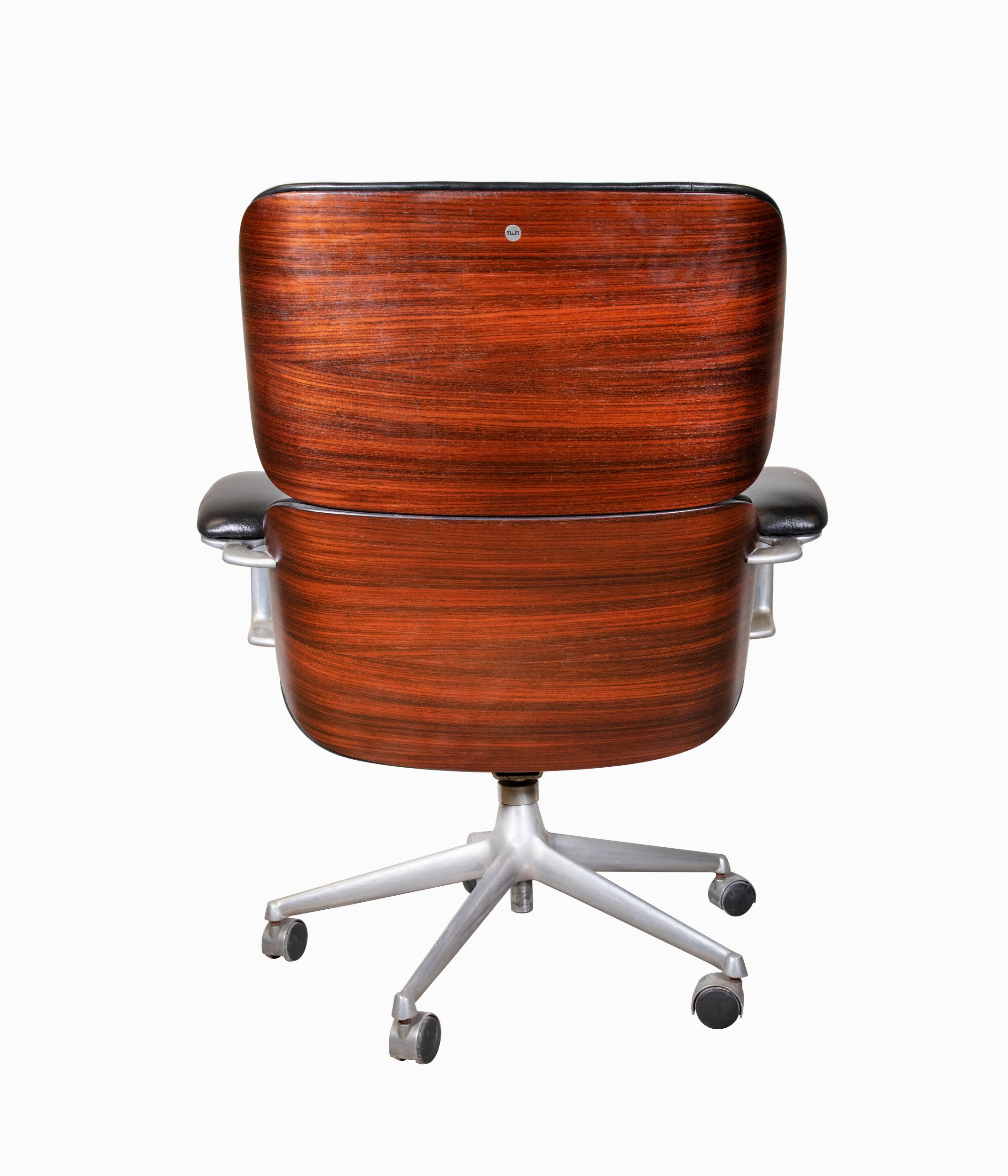 1960 Poltrona vintage MIM (Mobili Italiani Moderni) in acciaio, palissandro e pelle.