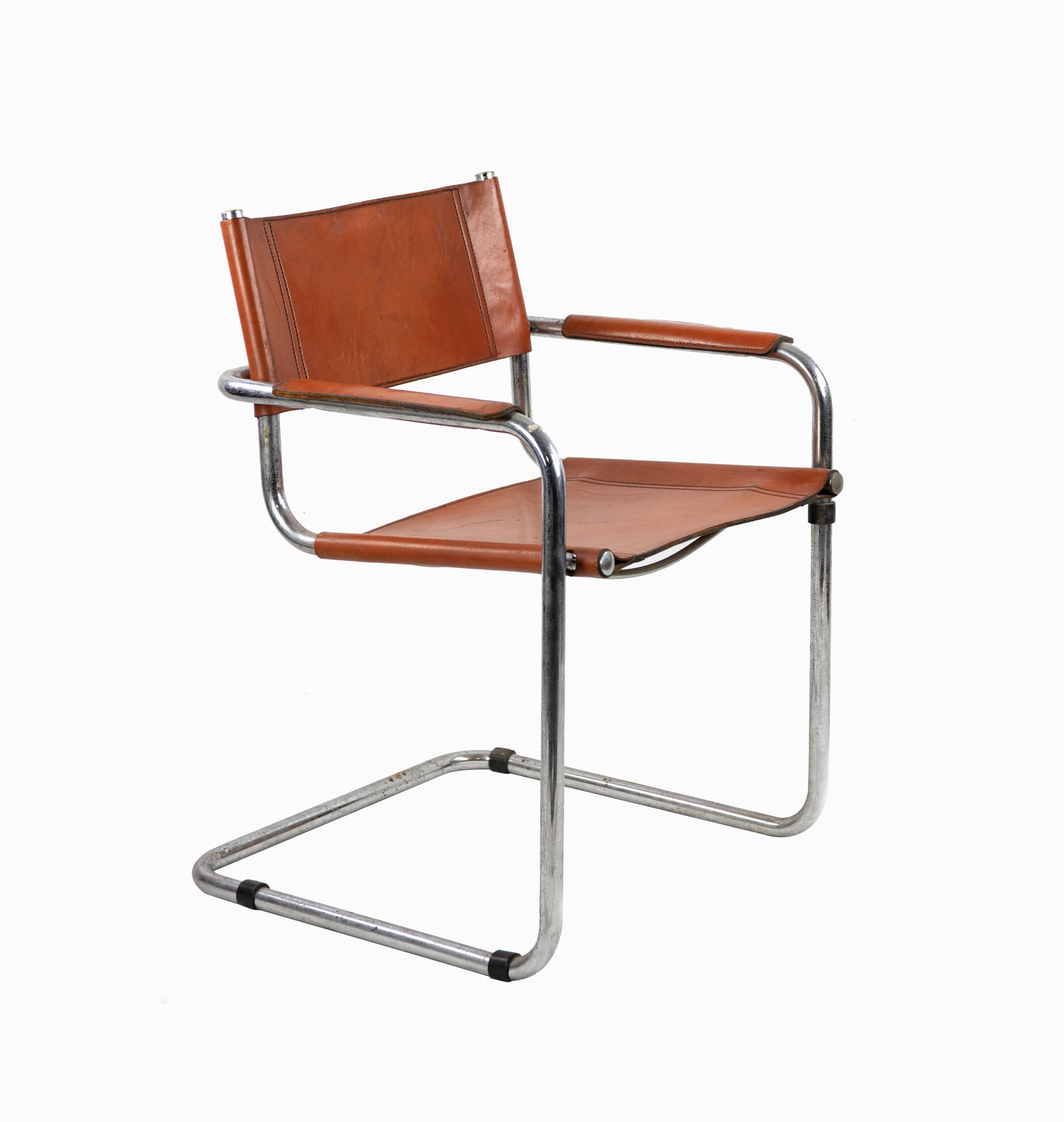 1970 Una sedia di metà secolo realizzata in acciaio e pelle anilina.