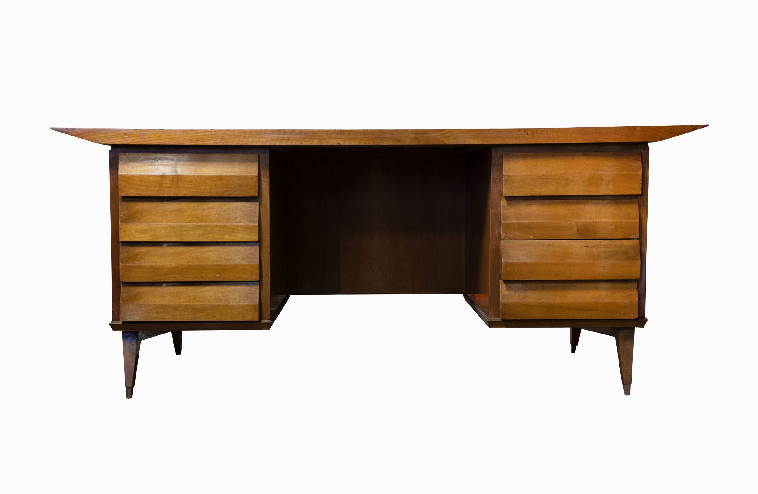 Metà del XX secolo Monumentale scrivania in legno con cassetti laterali realizzata da Melchiorre Bega.