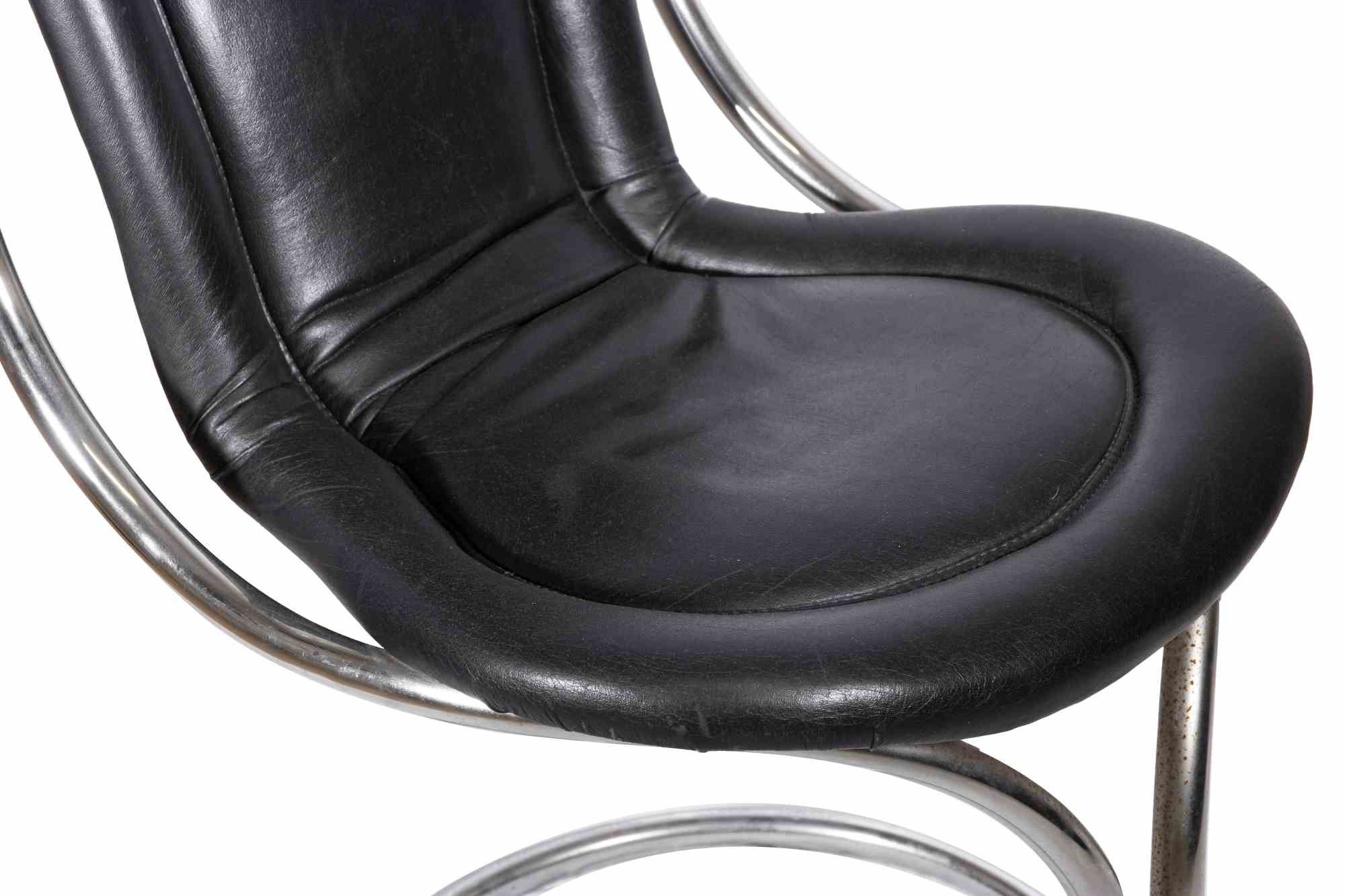 1970s Tubolare in acciaio e pelle nera