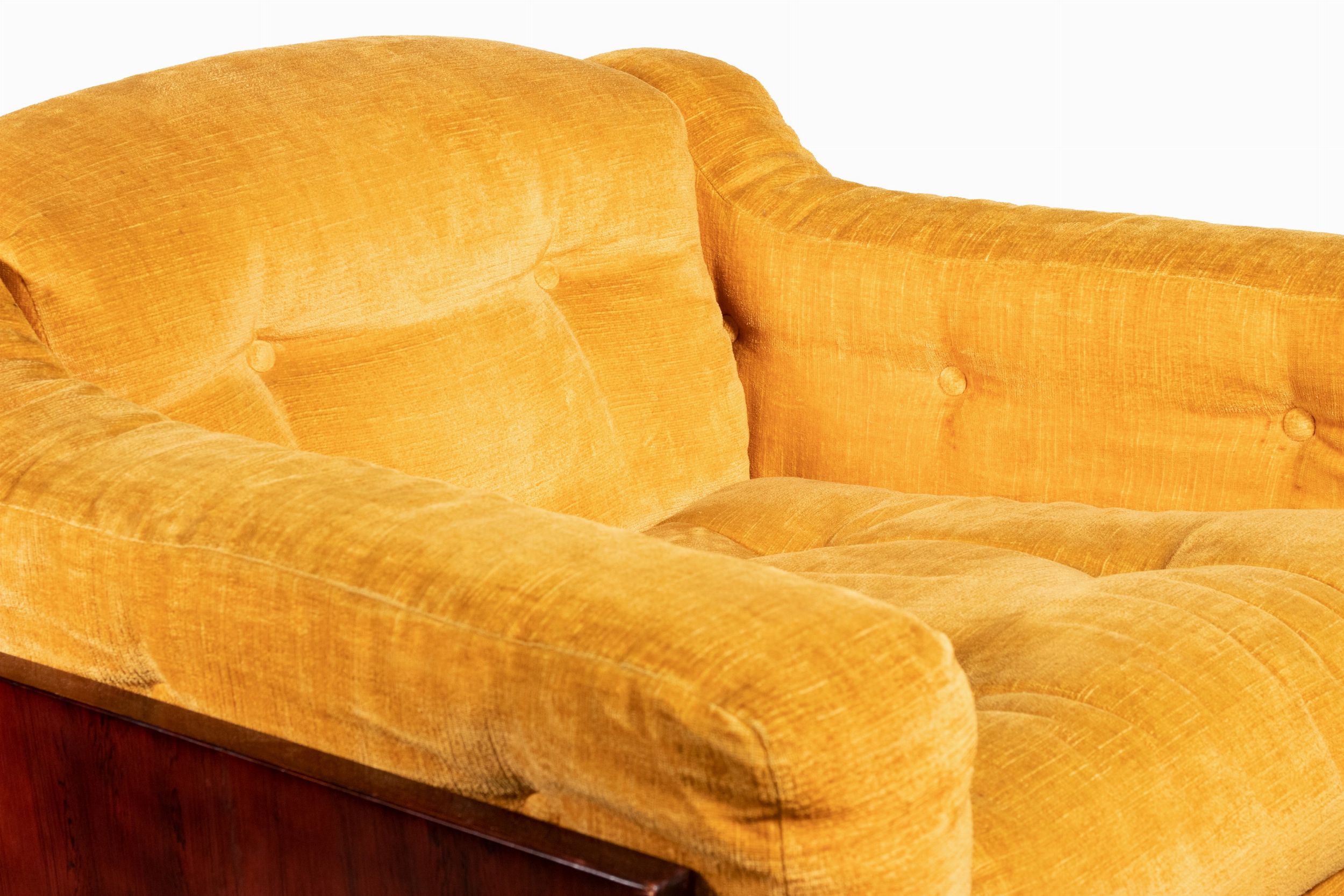 1970 Set da salotto anni '70 in palissandro e velluto giallo.