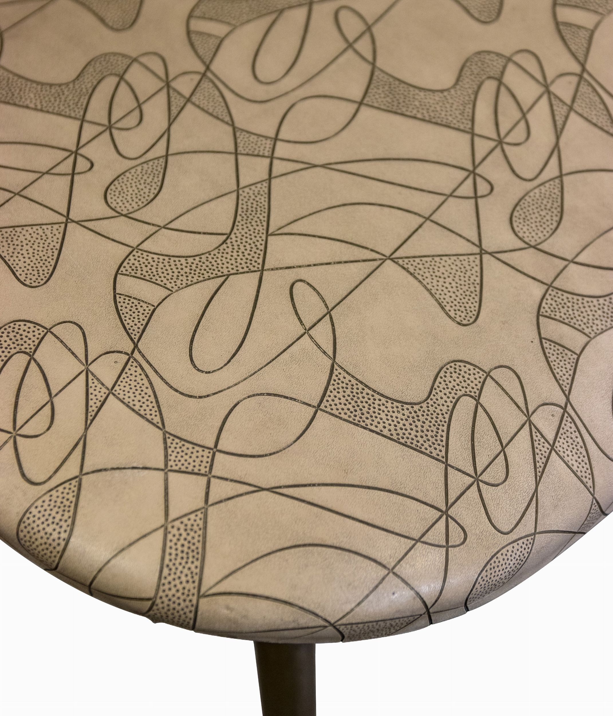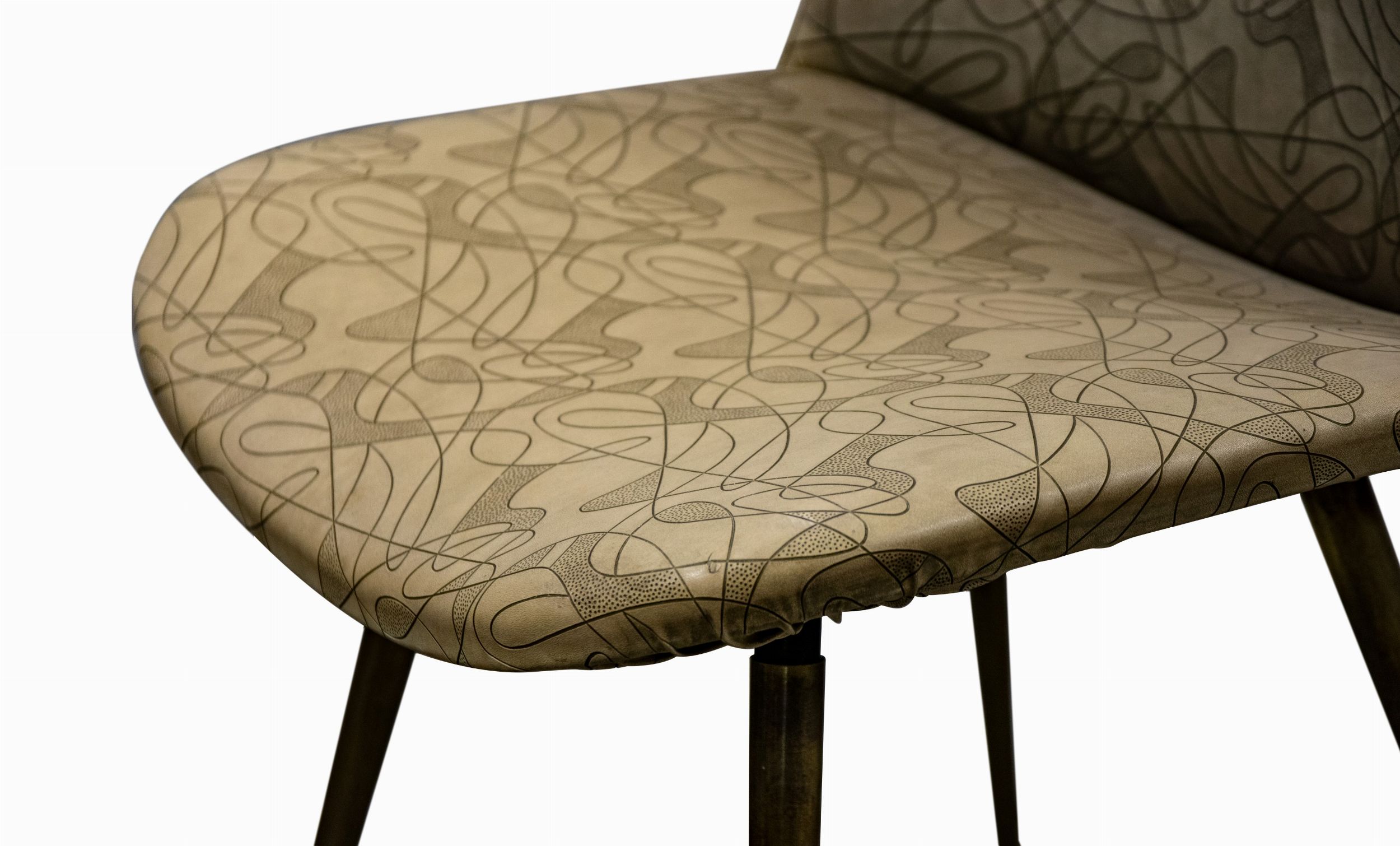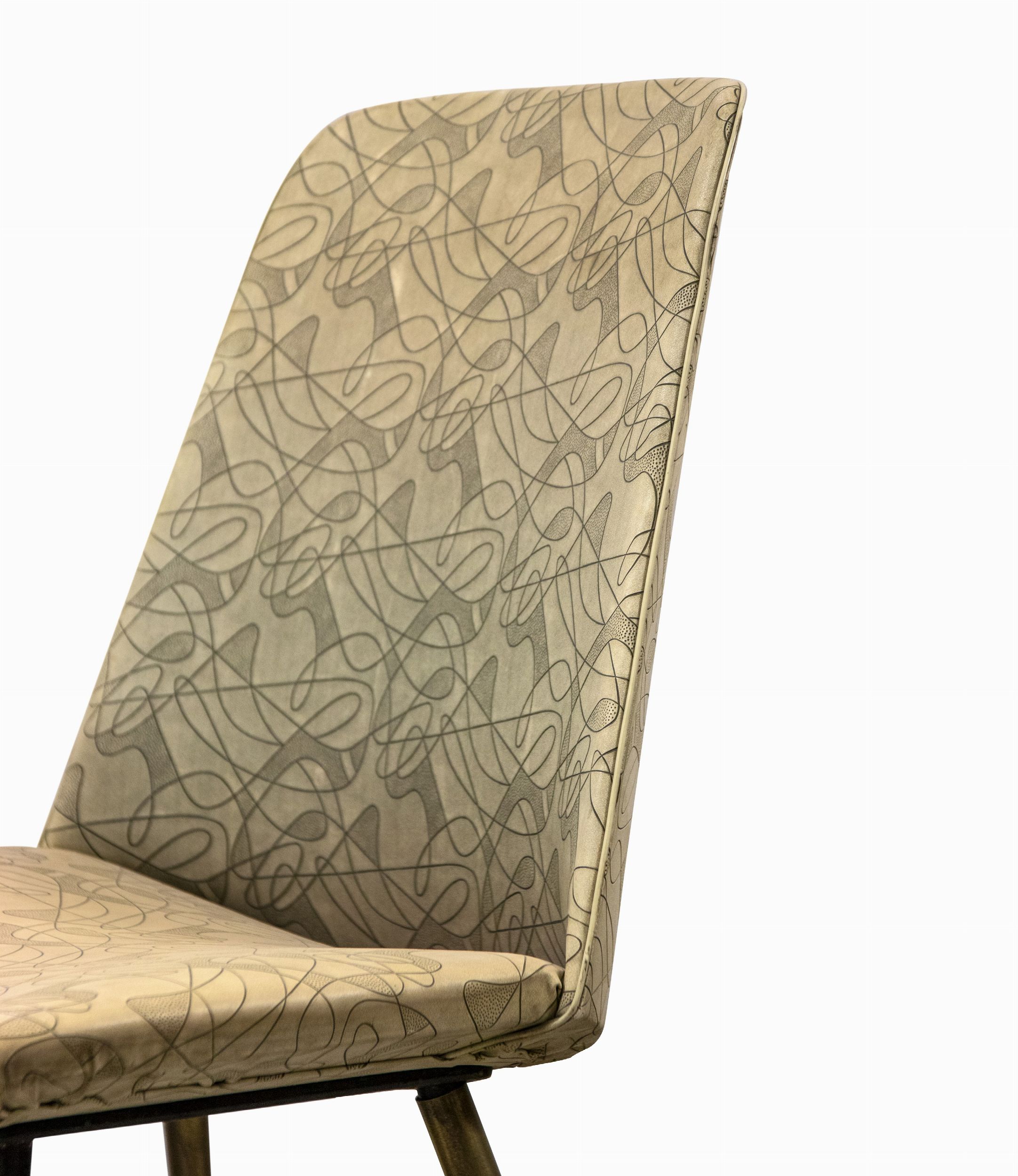Set di sedie di produzione italiana sullo stile di Gio Ponti con skai in ottone e ricamato. Tappezzeria originale.