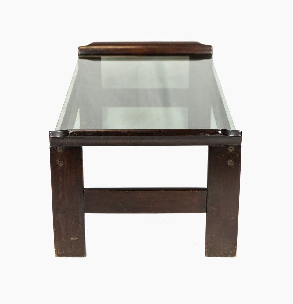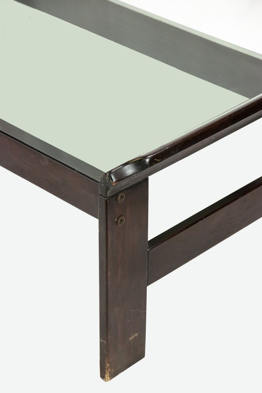 1970s Tavolino vintage realizzato in legno di mogano con piano in vetro.