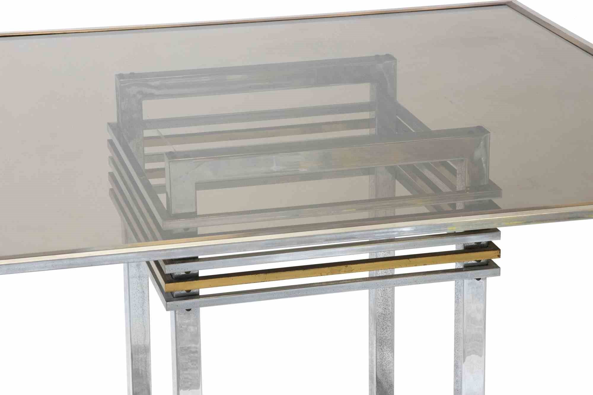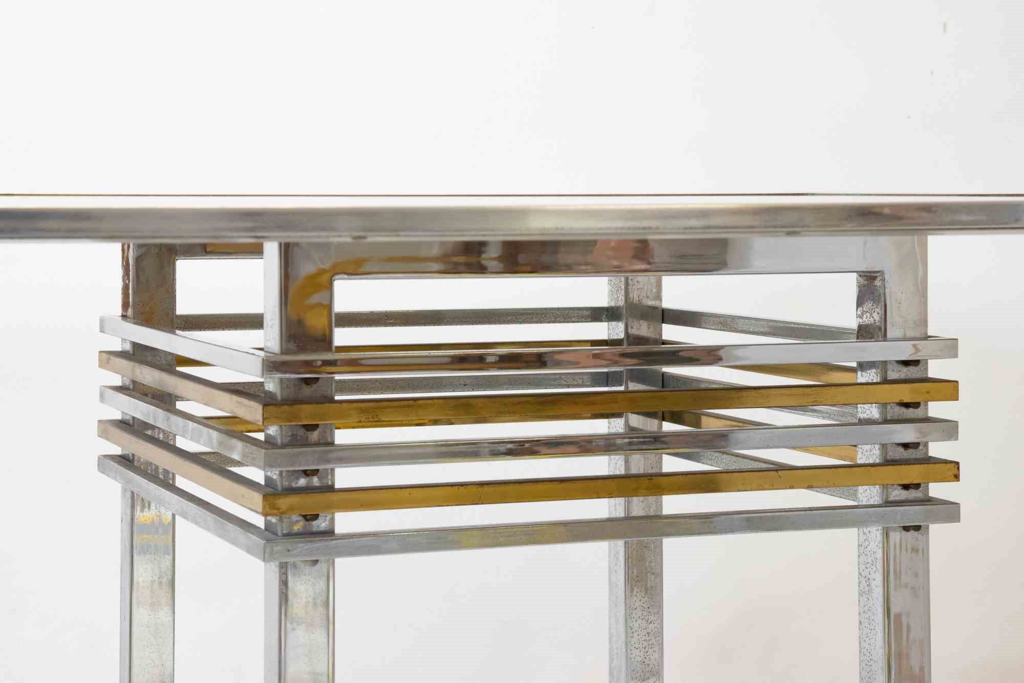 1970s Il tavolo vintage in ottone e cromato è un oggetto di design originale realizzato da Romeo Rega per Metalarte negli anni Settanta.