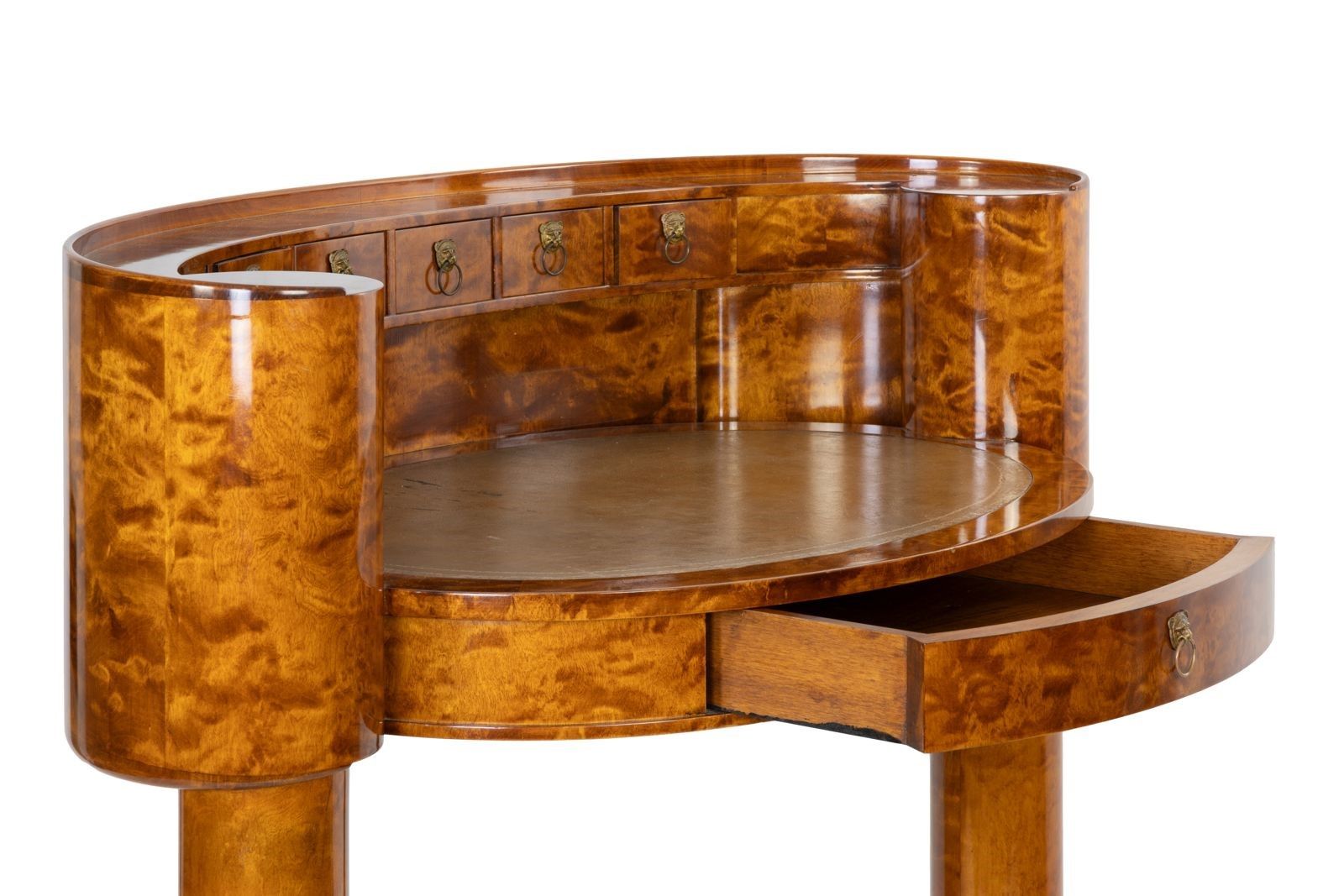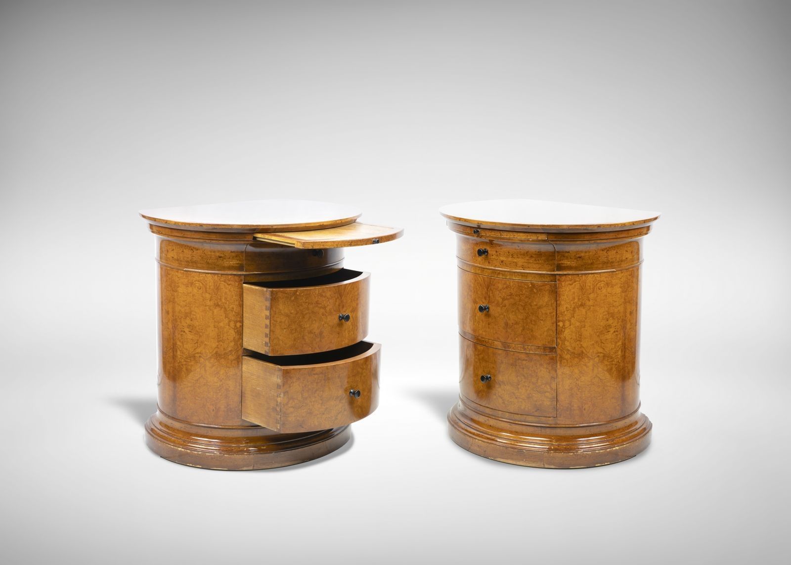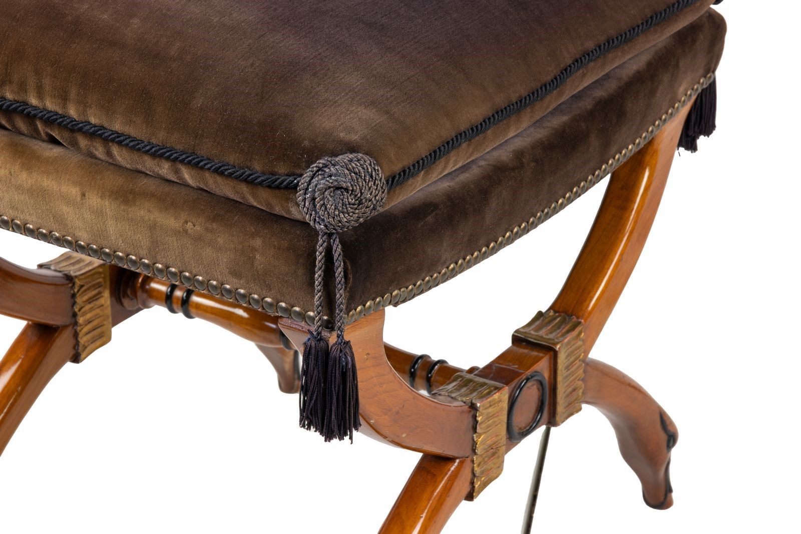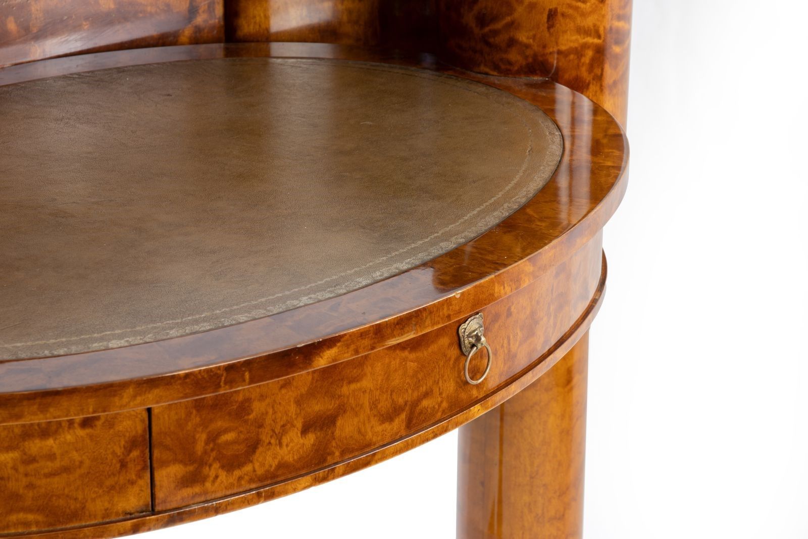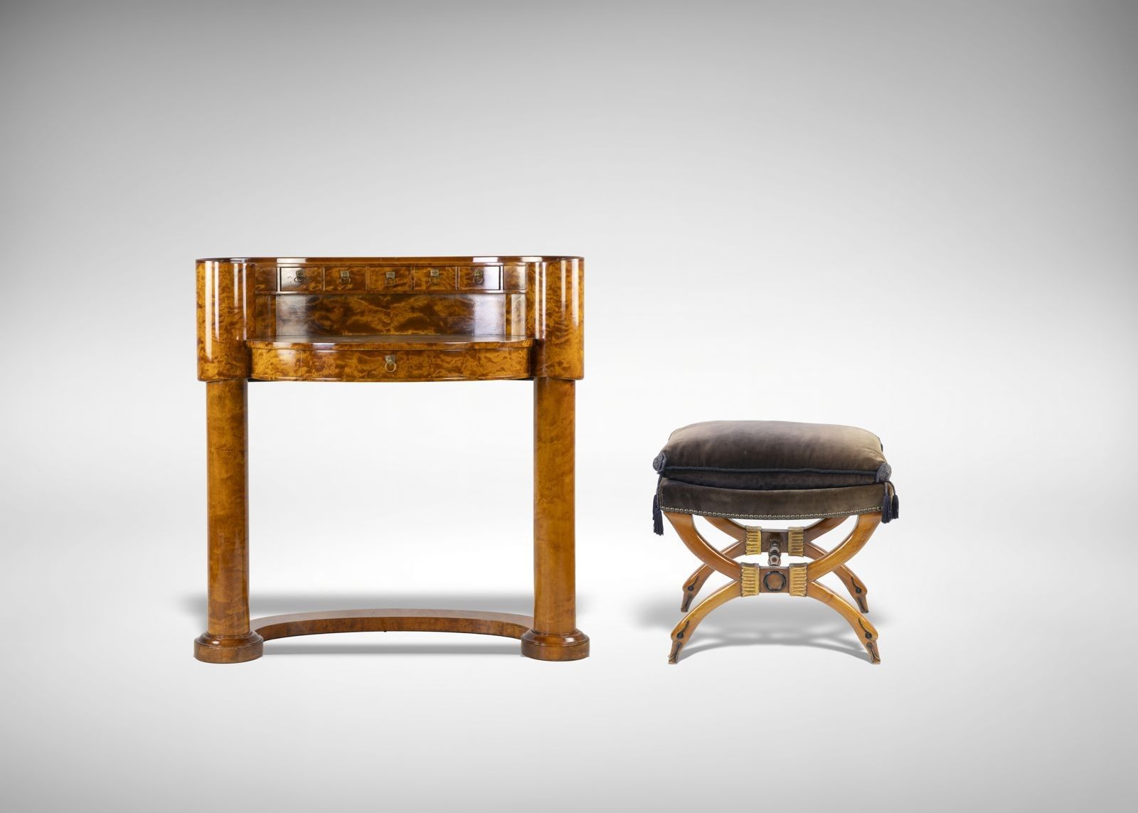 Un'elegante camera da letto Biedermaier, attribuita a Joseph Ulrich Danhauser. Noce, pelle, metallo brassa. In ottime condizioni e comprendente camera da letto (cm 110 x 230 x 183), scrivania (cm 60x42x60), sgabello, consolle (cm 85 x 45 x 109) e 2 comodini. Joseph Ulrich Danhauser ( 14 marzo 1780 a Vienna; †9 gennaio 1829 a Vienna) fu un produttore di mobili sul Wieden, vicino a Vienna, durante il periodo Biedermeier.