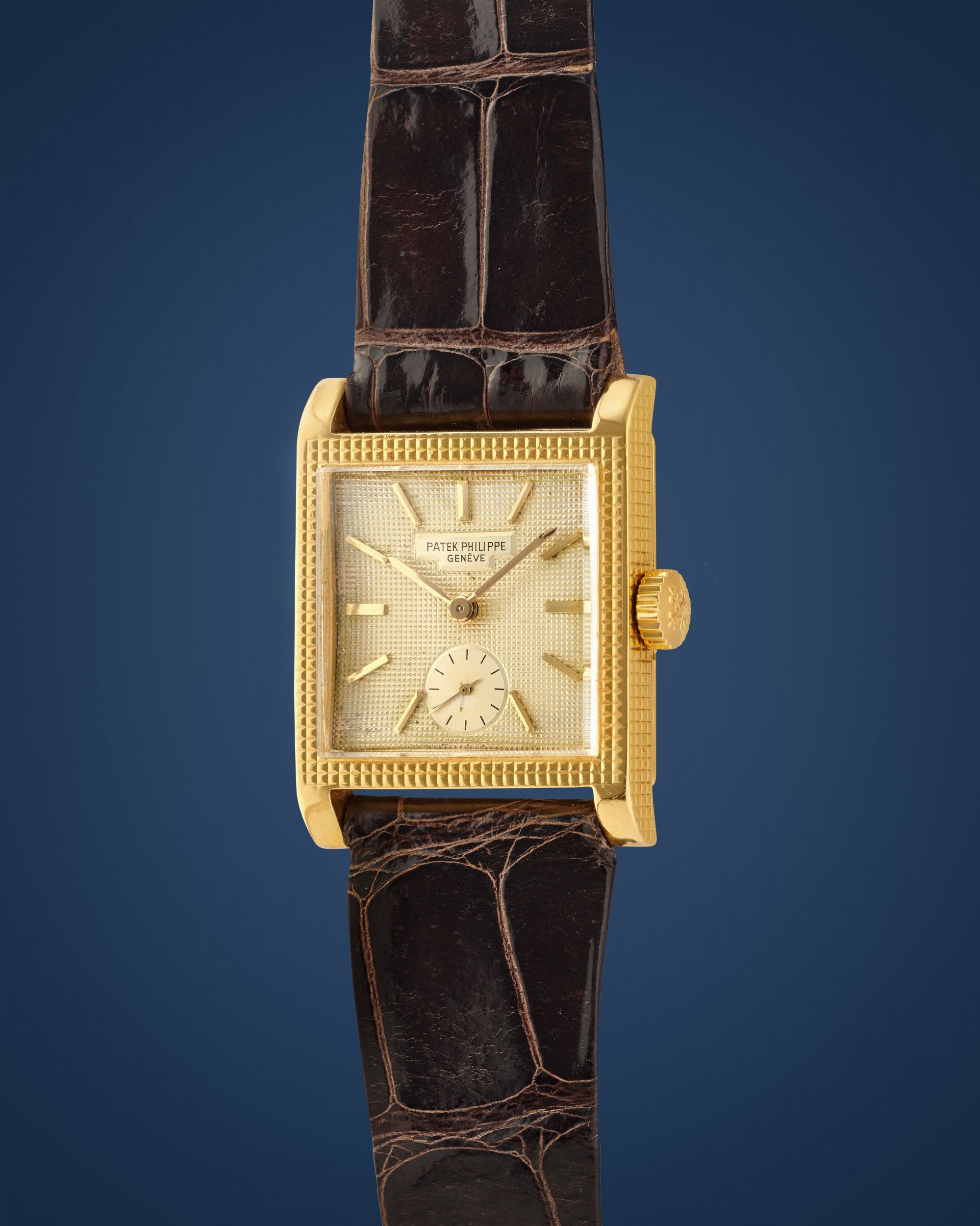 anni 60 Cassa rettangolare in oro 18k con finitura clous-de-Paris, n.516229.