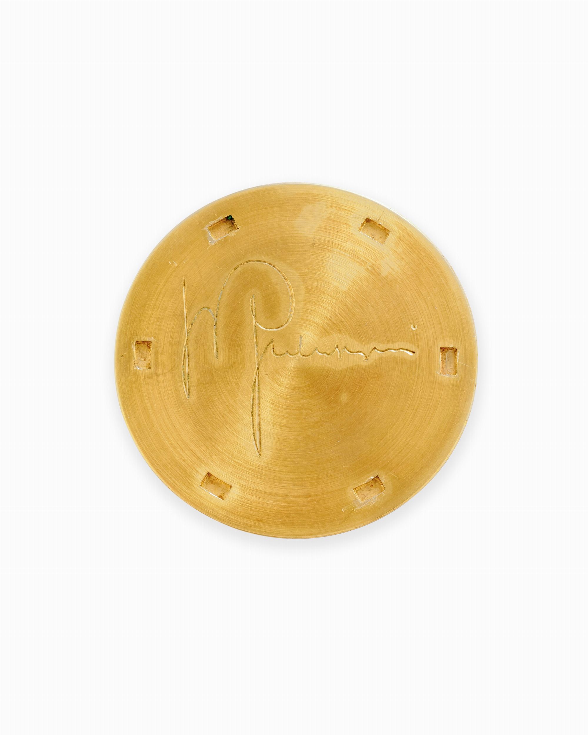 anni 80 Cassa rotonda in oro 18k, n.2828503, lunetta a gradini, fondello a vite con incisa firma di Silvio Berlusconi.