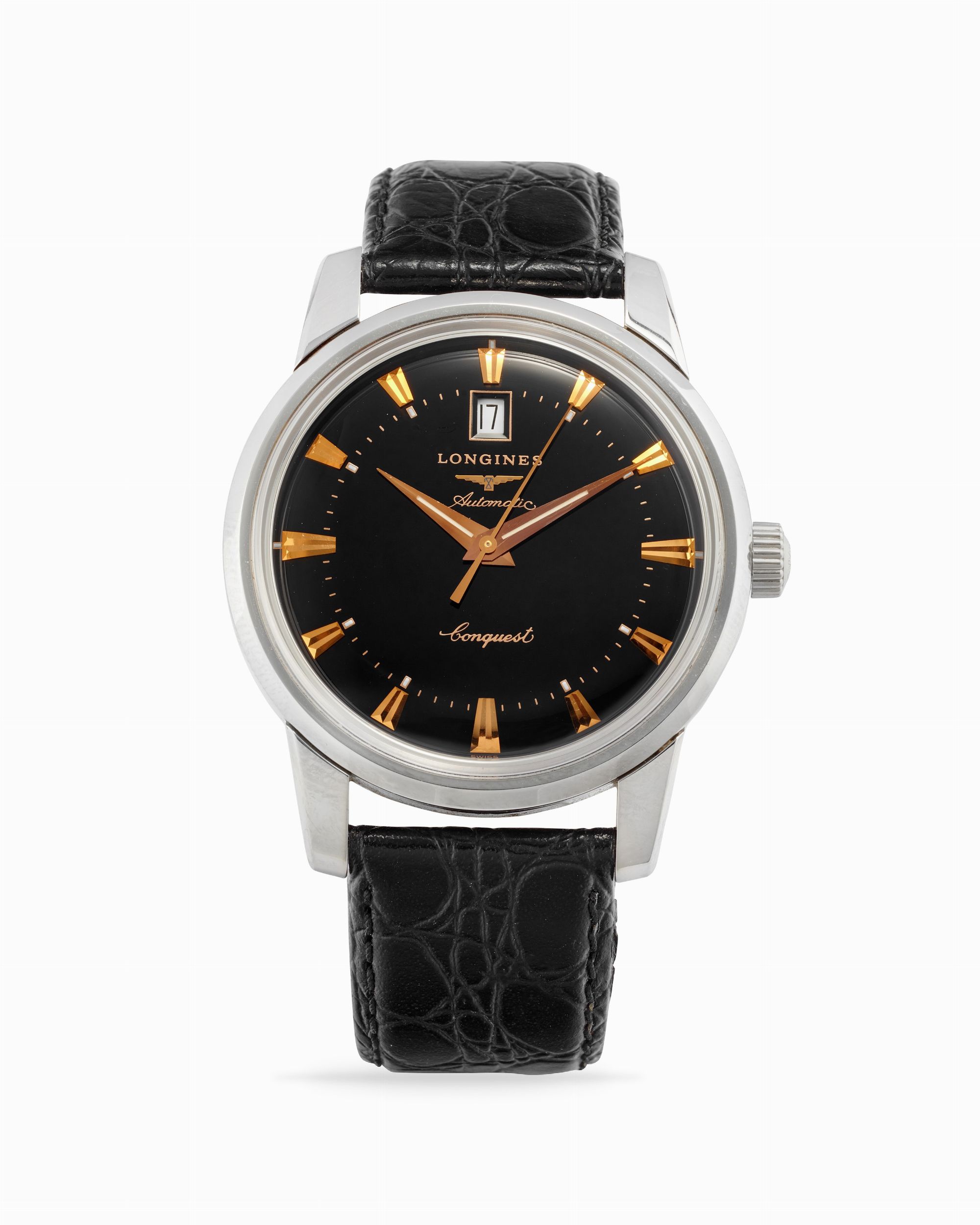 Cinturino Longines in pelle e fibbia Longines in acciaio.