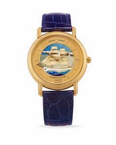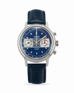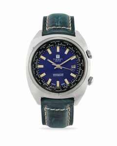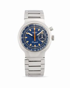 anni 70 Cassa tonneau in acciaio, fondello a vite con medaglione veliero, doppia corona. Quadrante blu, indici [..]