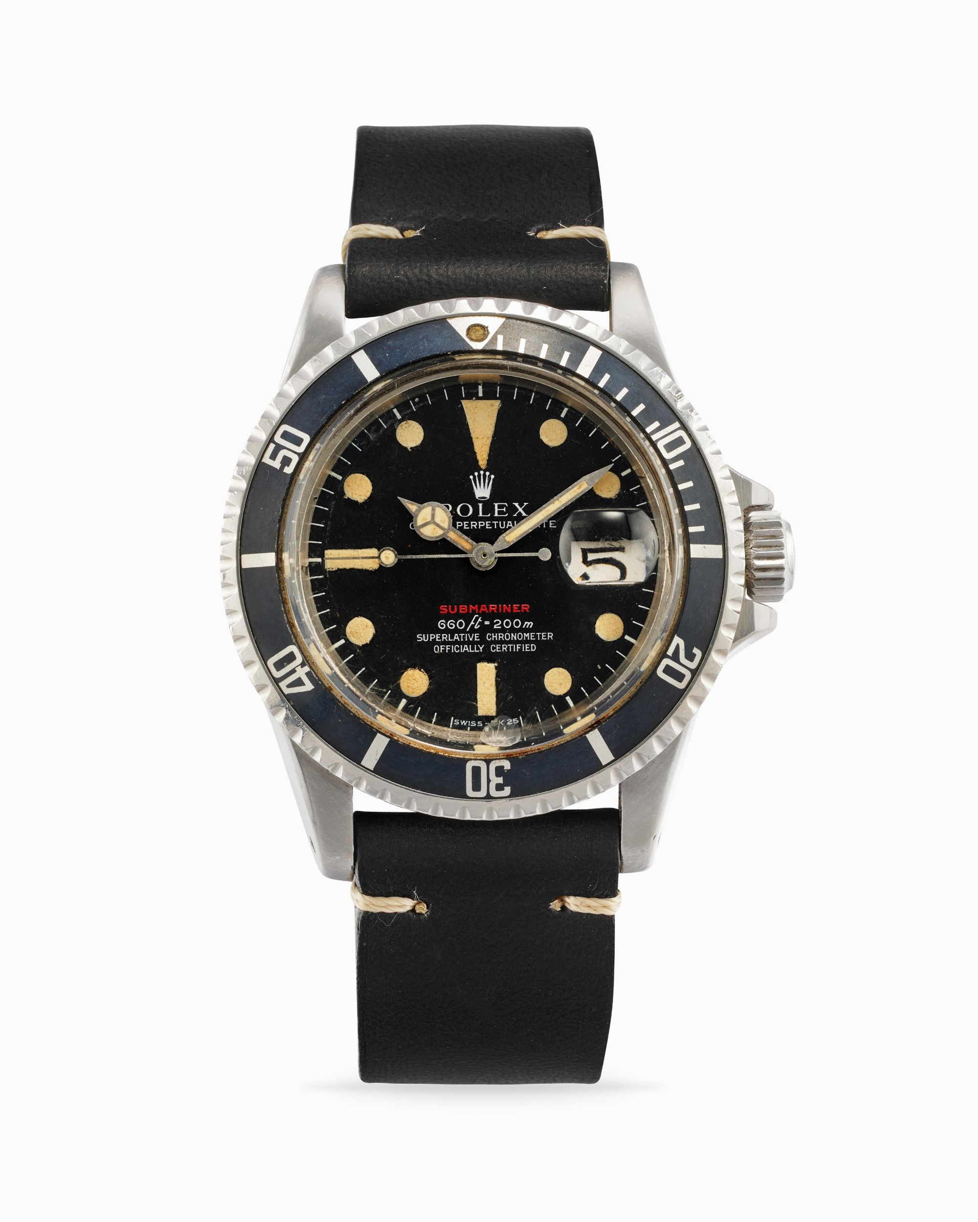 Quadrante nero, indici luminescenti, scritta Submariner rossa.