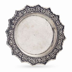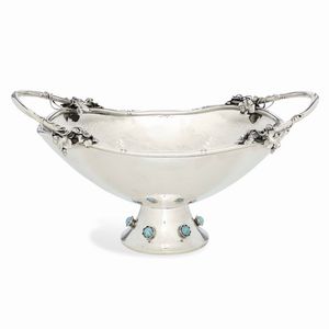 Argento sterling fuso, sagomato e cesellato, gr 1100 Largh. 29,5 - Alt. 12 Cm