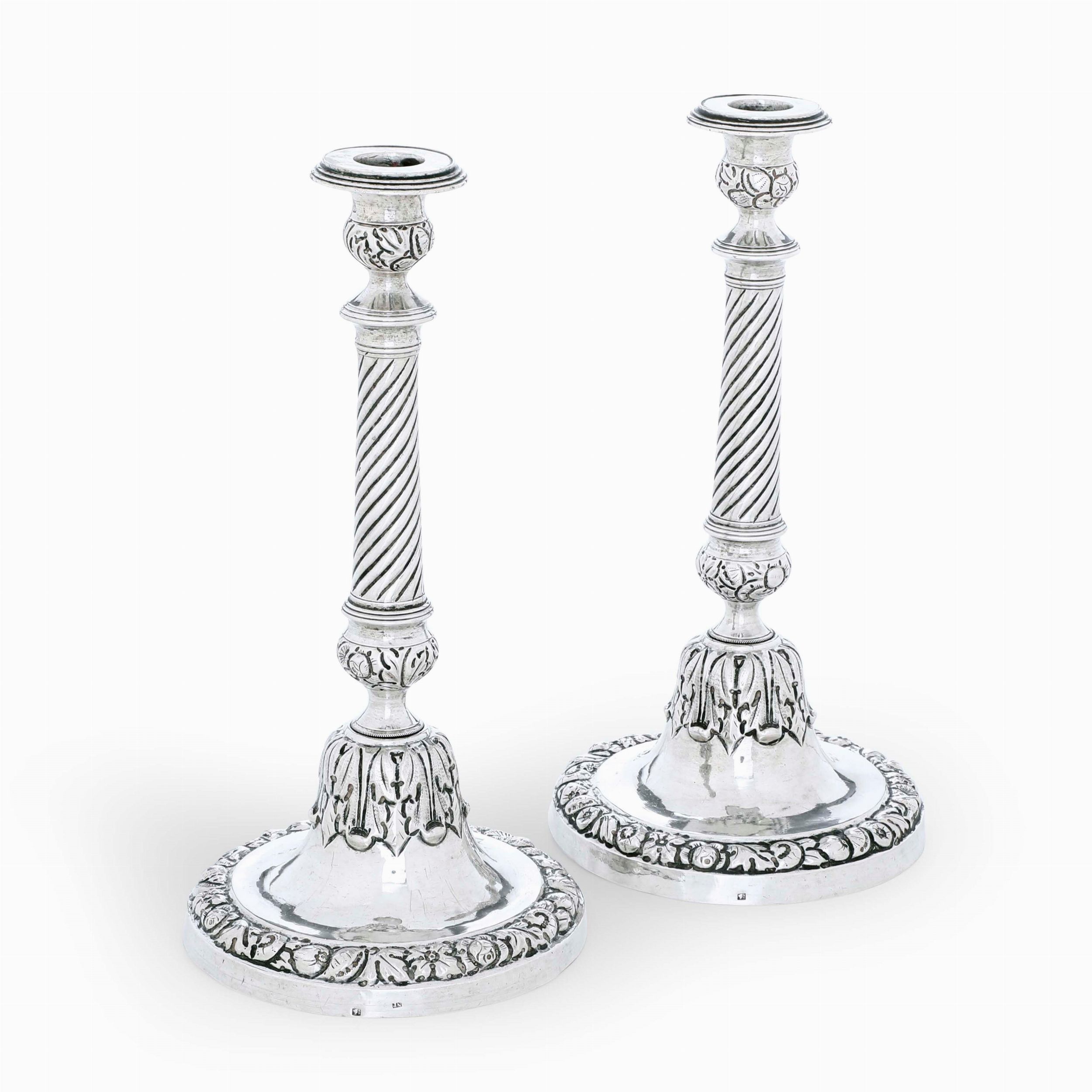 Coppia di candelieri. Napoli, XIX secolo. Marchio dell'argentiere N.P. (non iden [..]