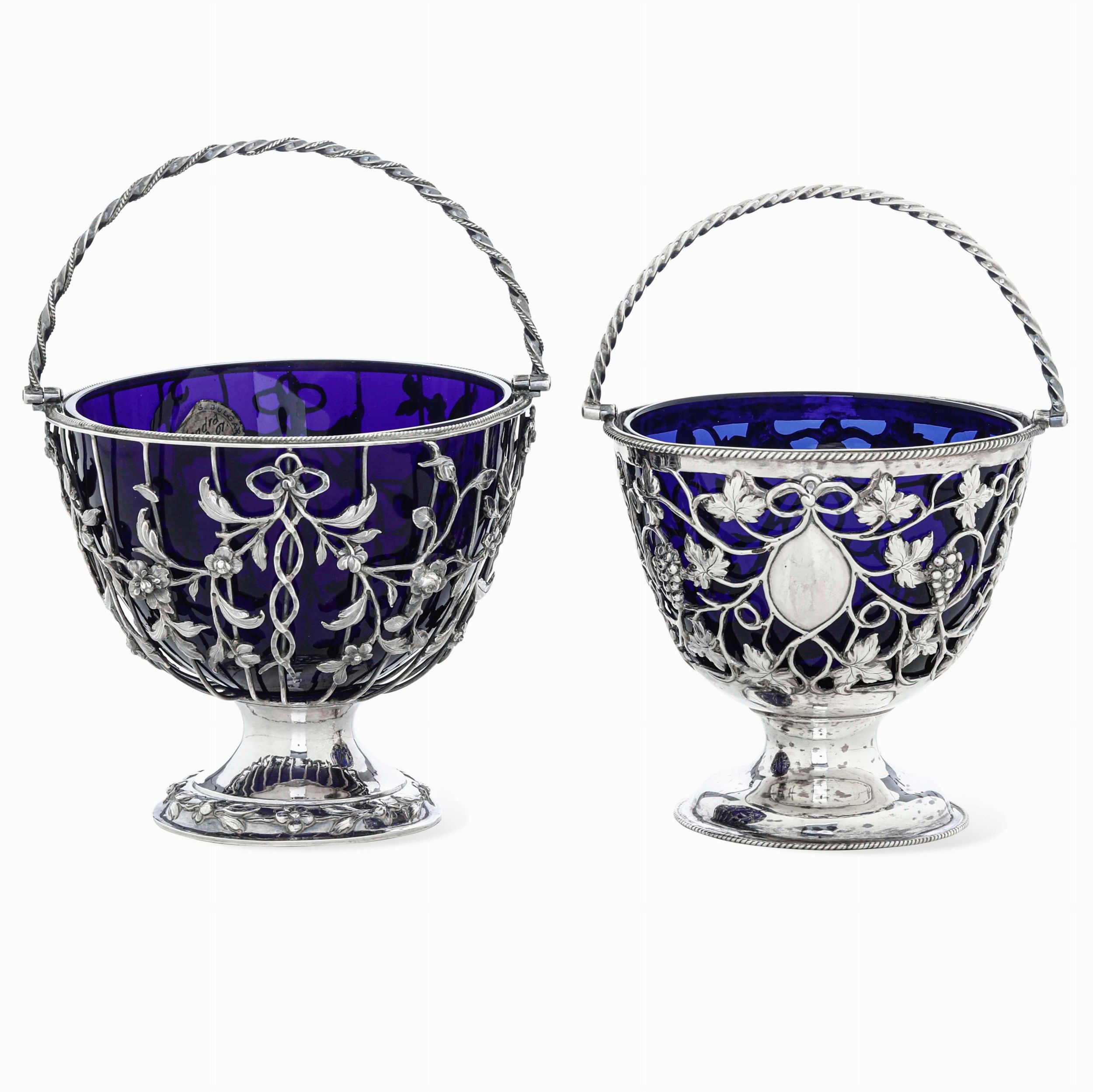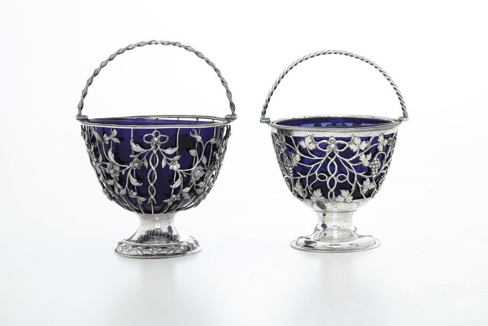 Due cestini traforati con vetro blu cobalto. Londra, 1772. Argentiere William Vi [..]