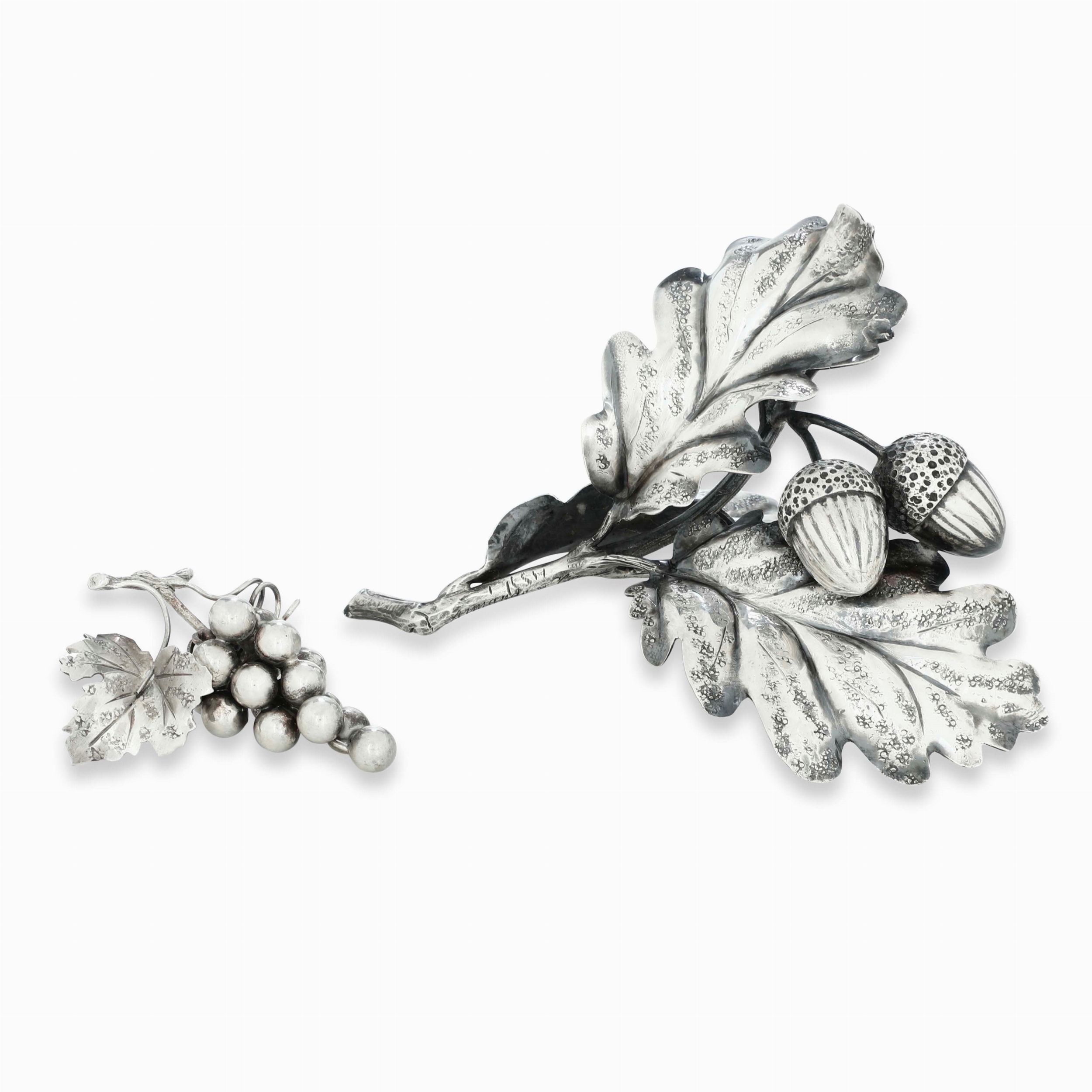 Due elementi decorativi a forma di ghianda e grappolo d'uva. Maison Mario Buccelati. [..]