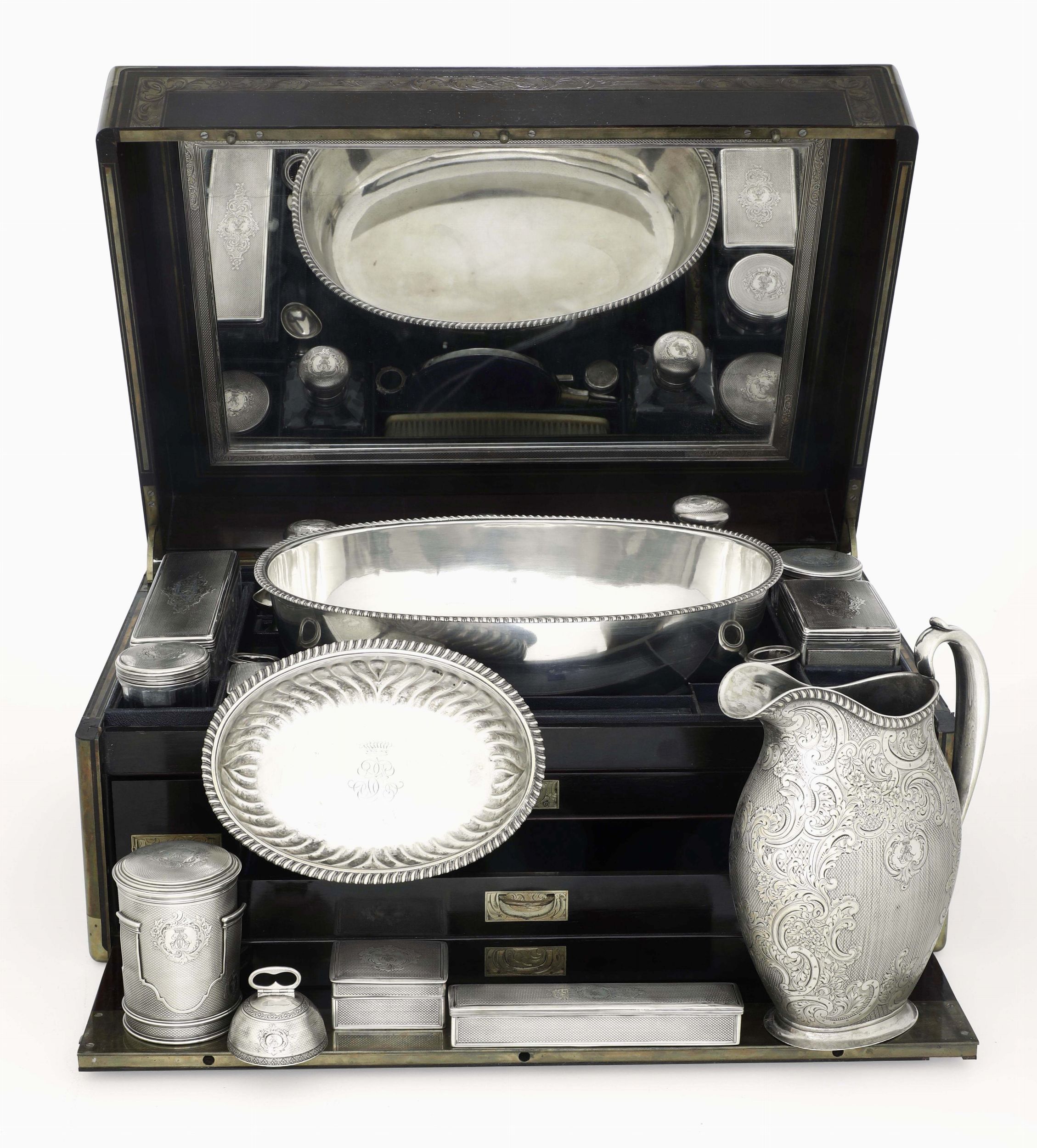 Importante servizio da toeletta entro custodia in legno. San Pietroburgo 1824, saggiatore [..]