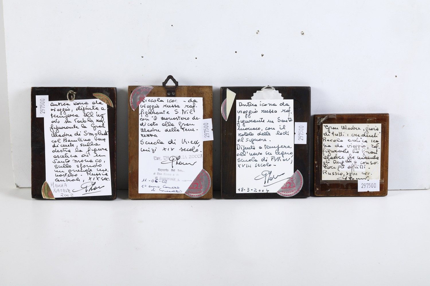Lotto di quattro icone da viaggio a tempera su tavola, La Vergine protettrice di [..]