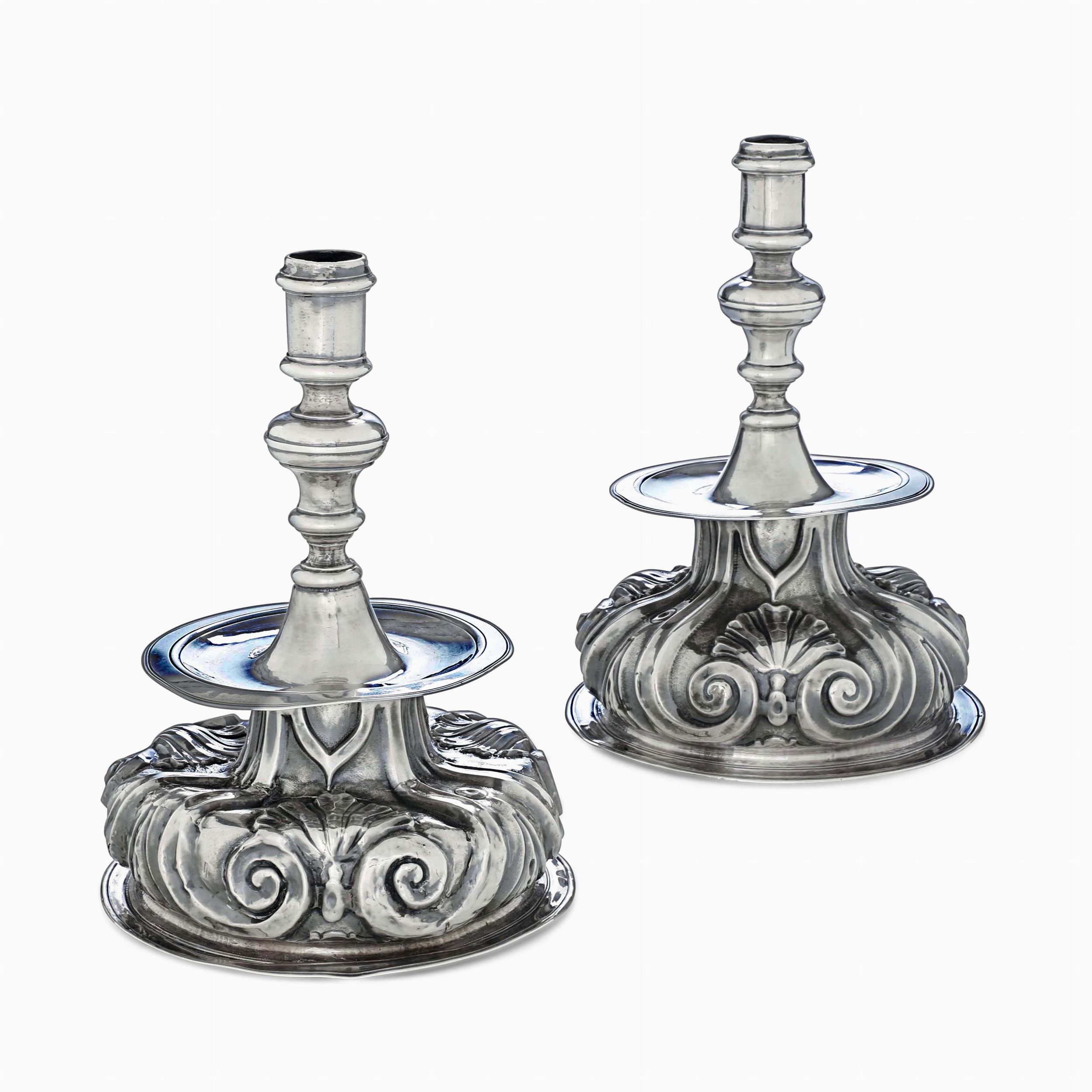 Rara coppia di candelieri. Genova, marchio della Torretta per l'anno (1)732