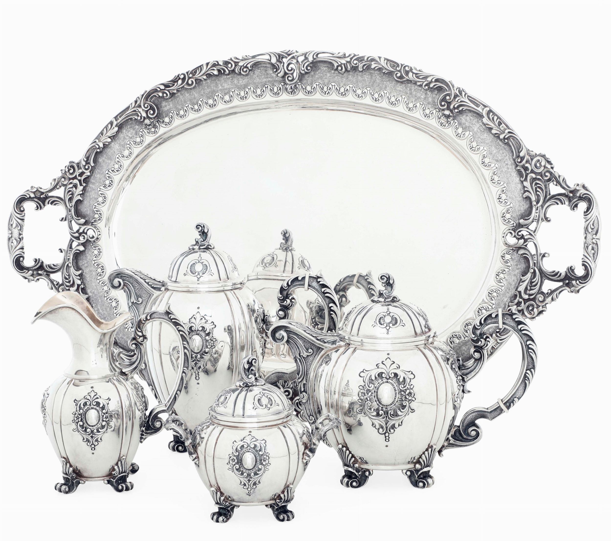 Servizio da tè e caffè con vassoio. Argenteria artistica milanese del XX secol [..]