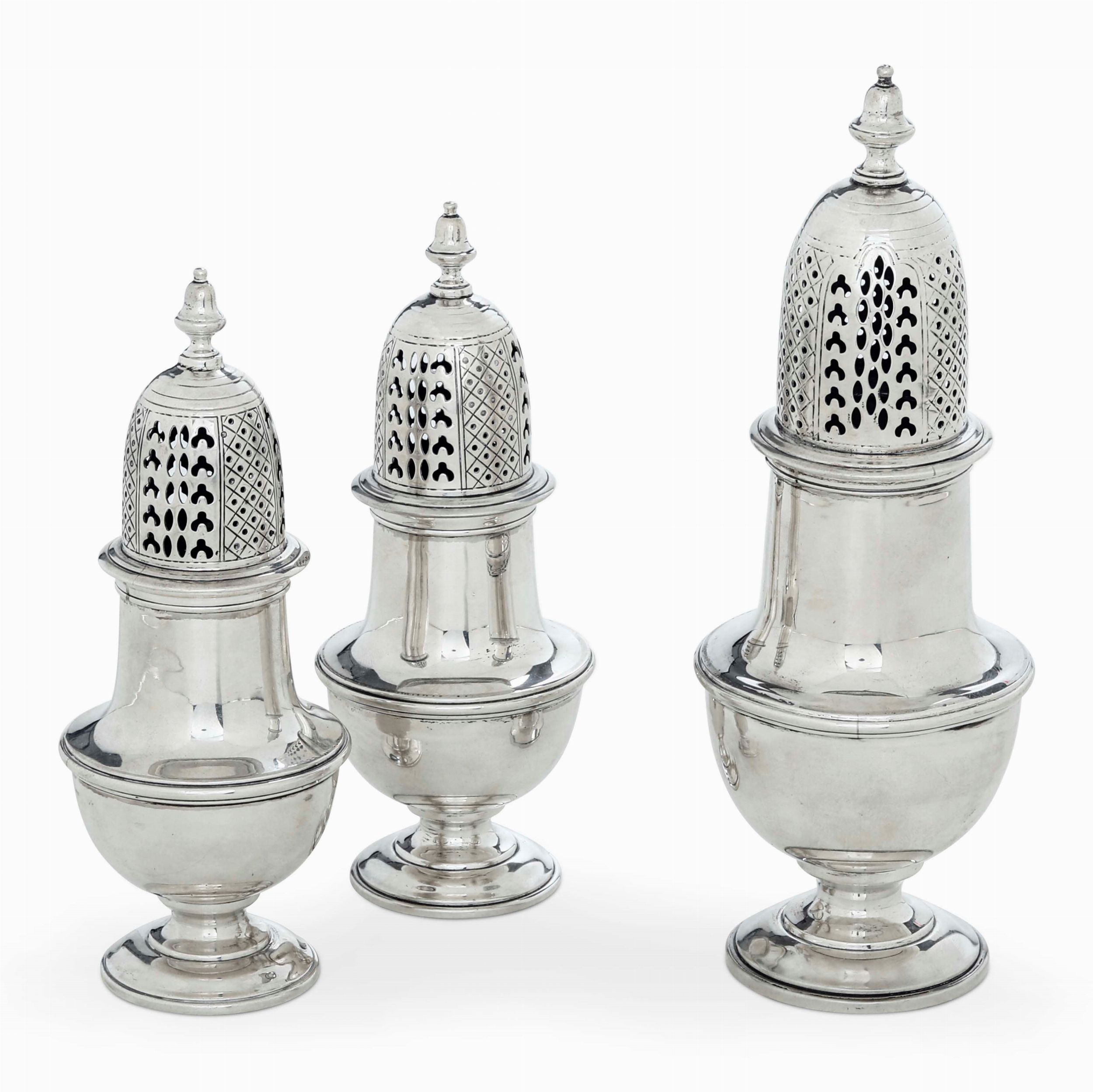 Tre spargizucchero. Londra, 1817. Marchio dell'argentiere parziale di difficile [..]