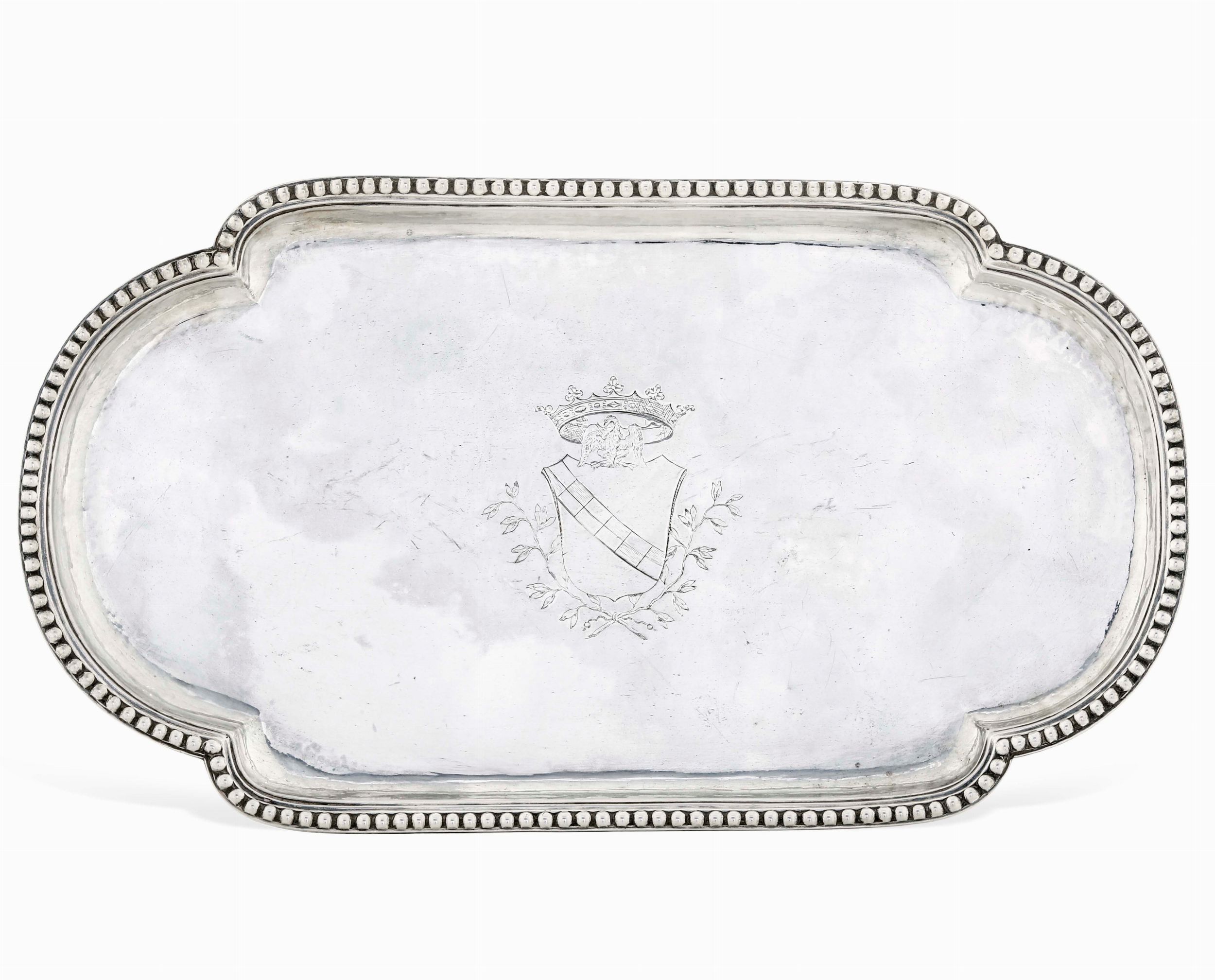 Vassoio porta posta. Argento fuso, sagomato e cesellato. Roma ultimo ventennio del [..]