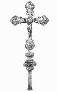 gr 780Cm 28X62 Croce con bracci decorati da motivi fogliacei e finali polilobati poggiati su grande nodo sagomato [..]