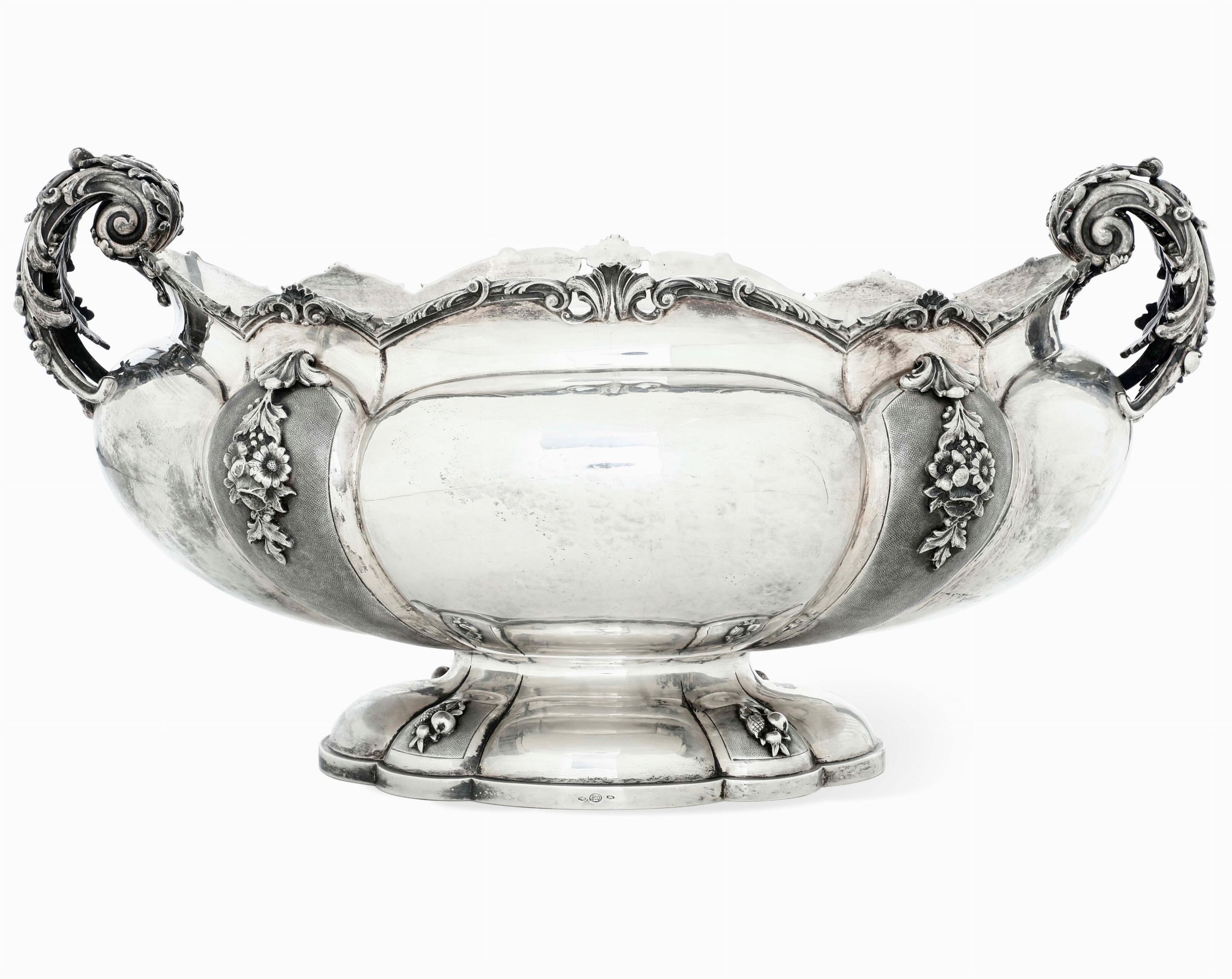 Grande centrotavola biansato. Argenteria artistica milanese, prima metà XX secolo. [..]