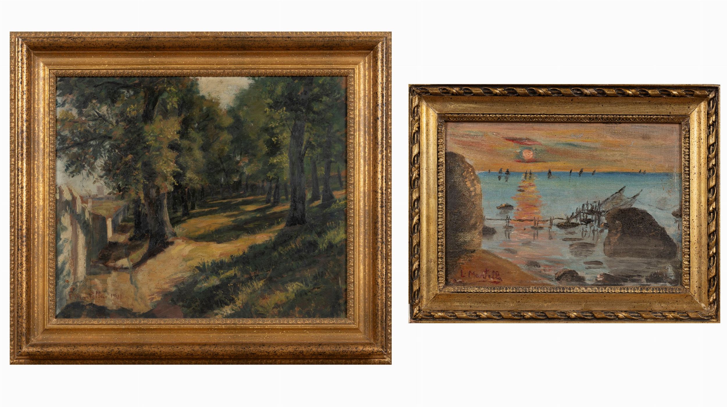 a) Luci nel parco, 1931olio su cartone, cm 37,3 x 45firmato e datato in basso a sinistra: L. Martella - 1931b) Tramonto sull'Adriatico, 1926olio su tela riportata su cartone, cm 15,5 x 22,5firmato e datato in basso a sinistra: L Martella / 26