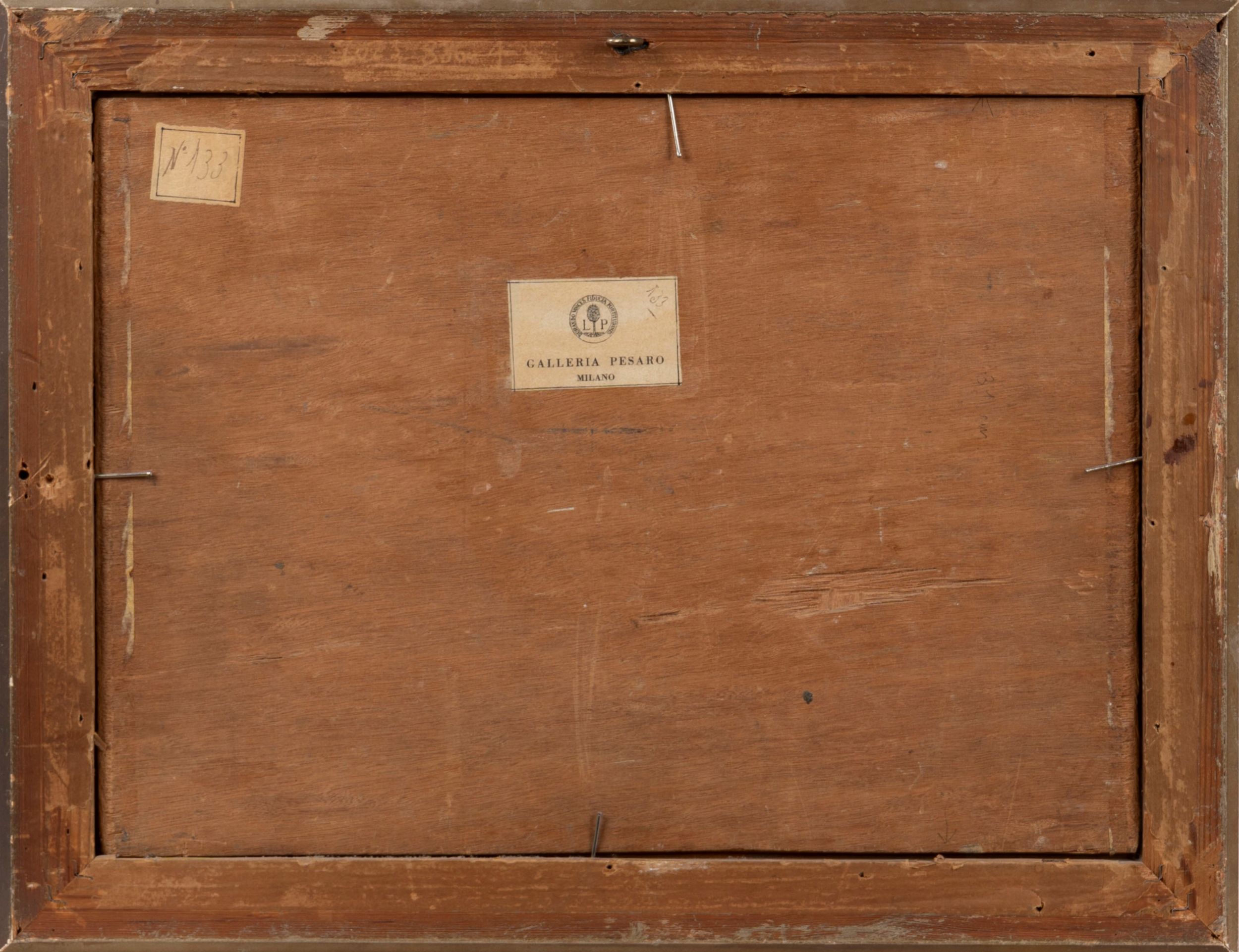 firmato in basso a sinistra: C. MontiSul retro, cartellino della Galleria Pesaro di Milano e numero di riferimento (133); antico cartellino con numero di riferimento (N° 133).