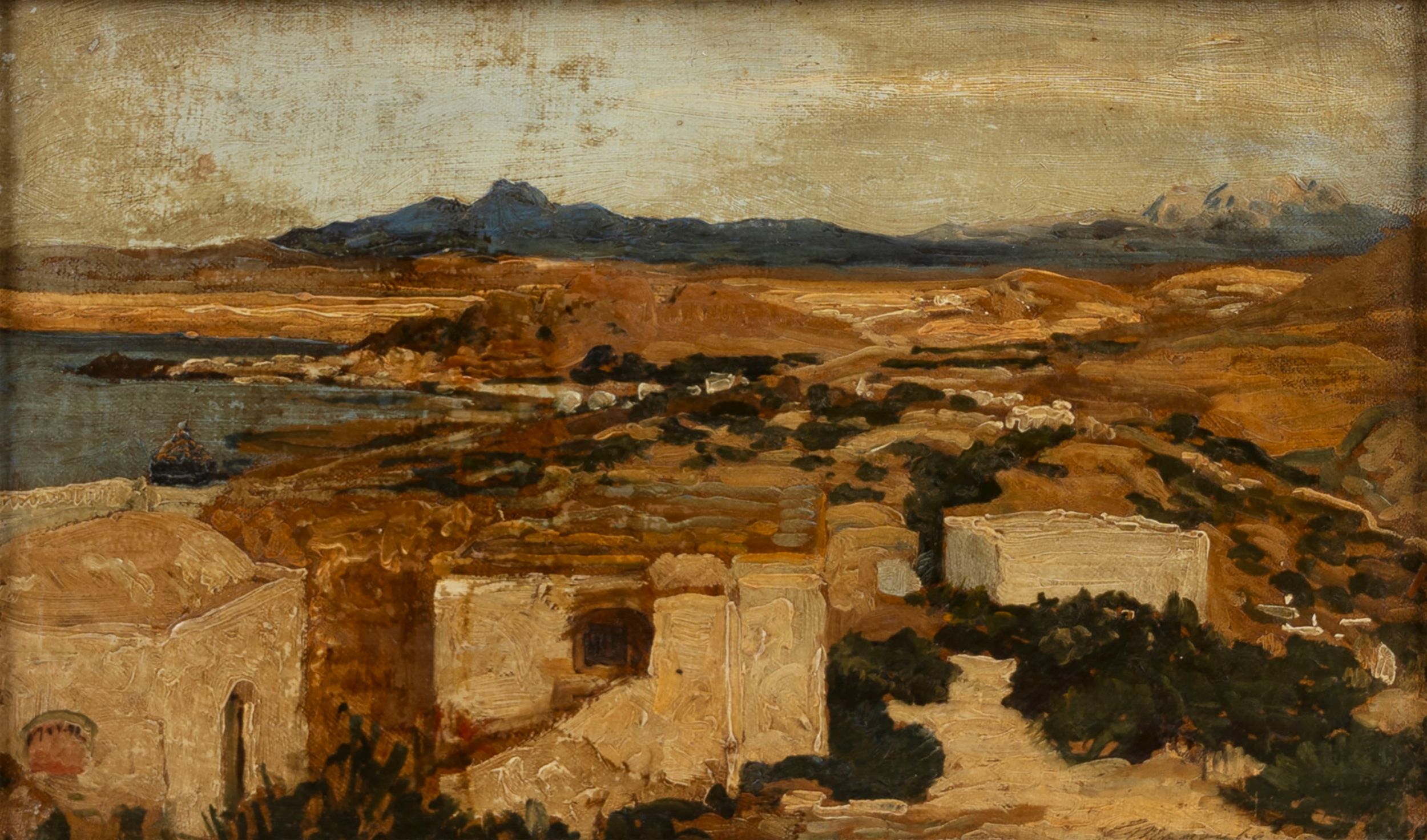 titolo illeggibile in basso a destraInsieme nel lotto:Max RoederRiflessi nel ruscello, 1895olio su cartone riportato su cartone, cm 38,8 x 31,4firmato e datato in basso a destra: Max Roeder / 95