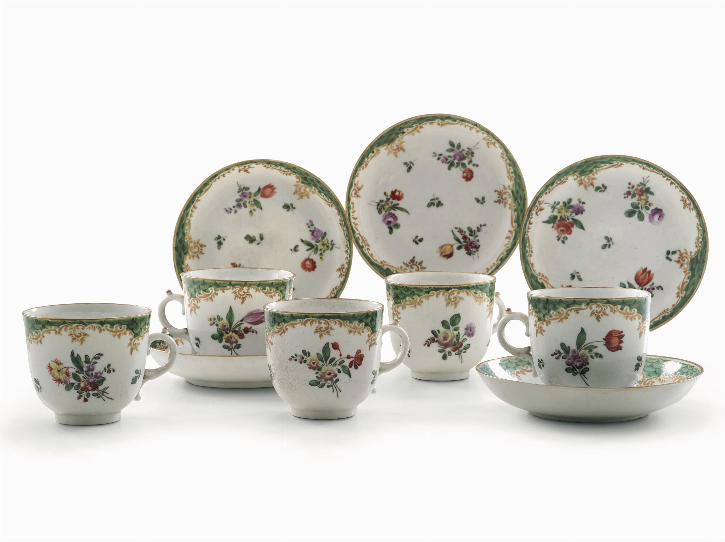 Cinque tazze con piattino