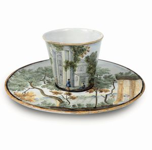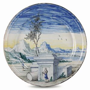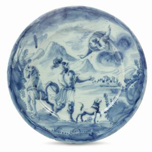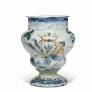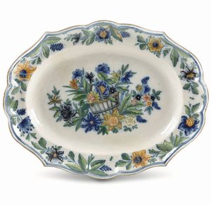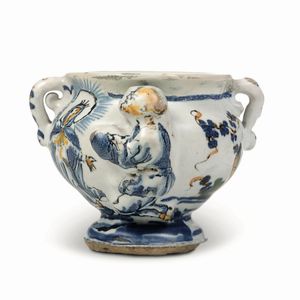 Maiolica policroma a gran fuoco. Marca: assente. Dimensioni: Altezza cm 15,6; 30x20. Conservazione: felature al [..]