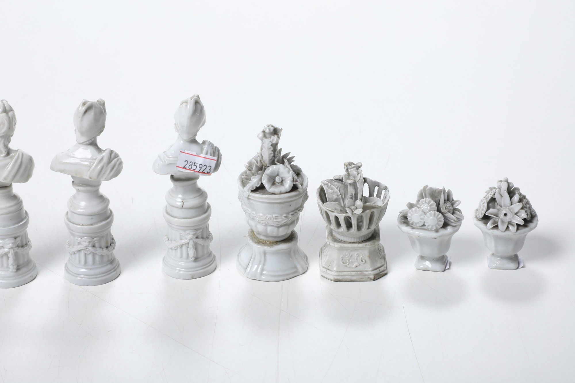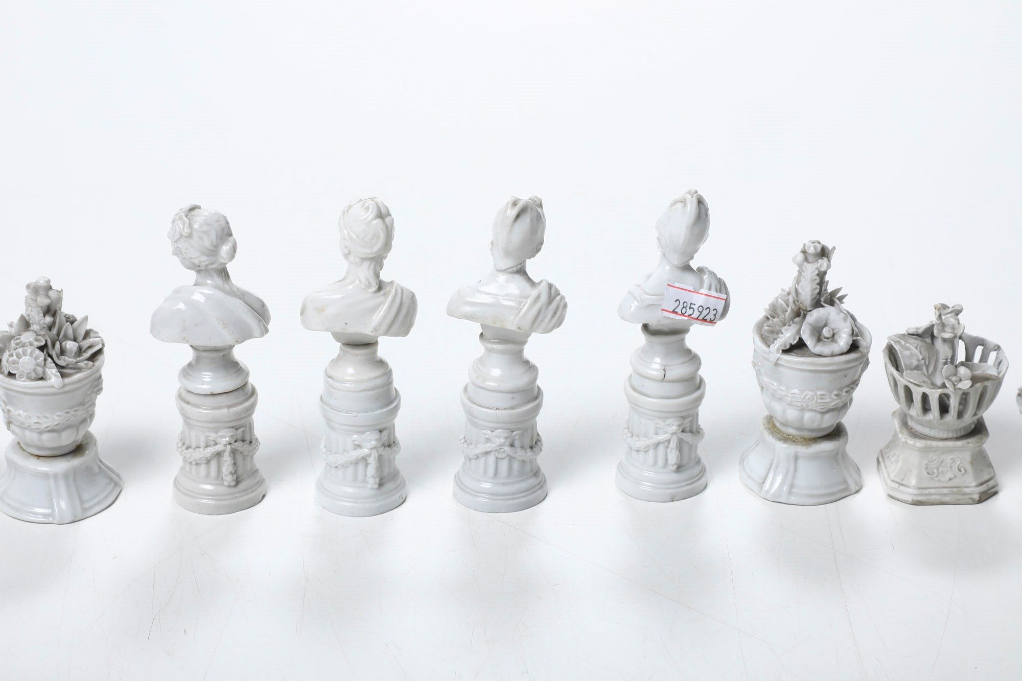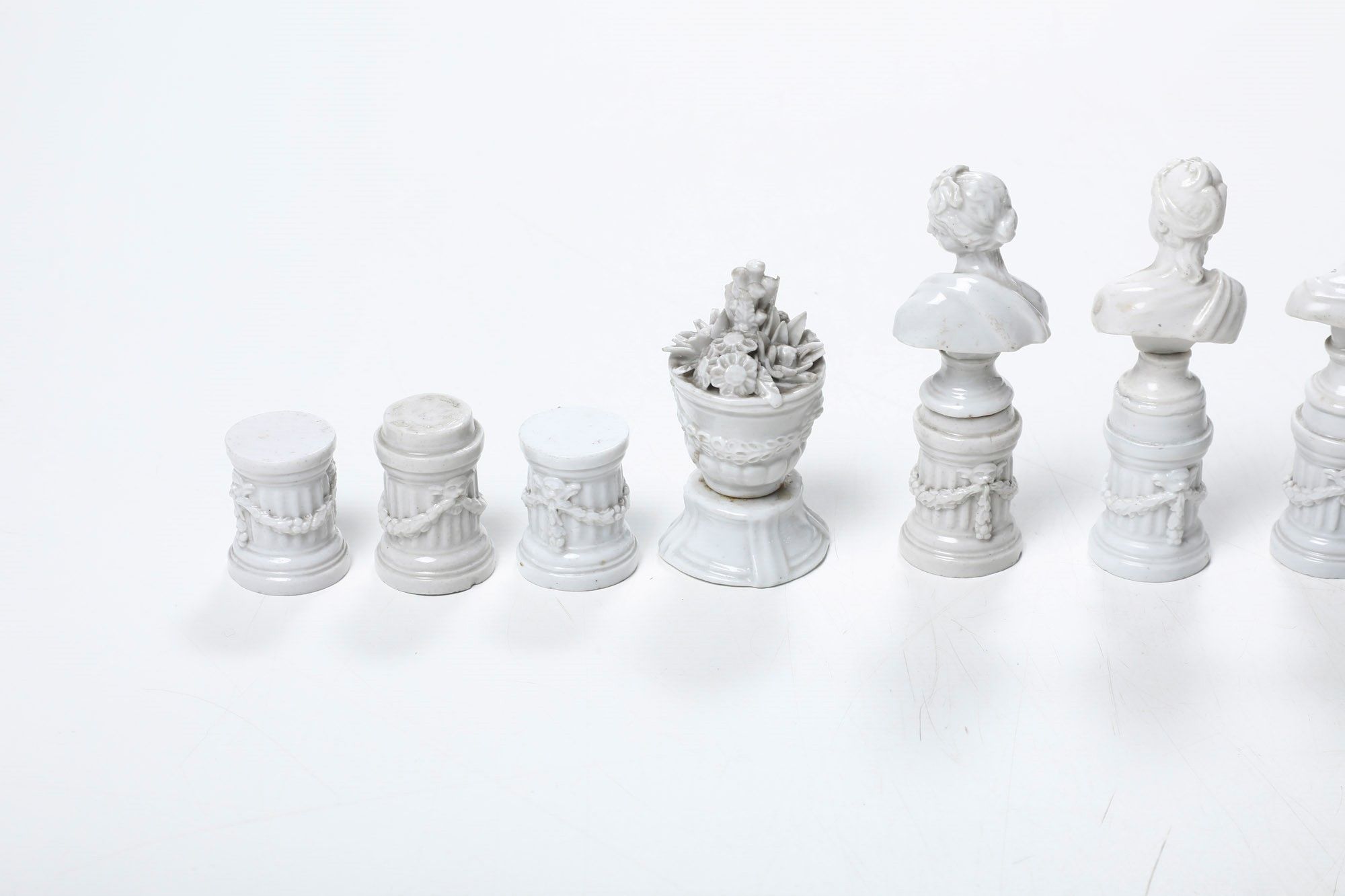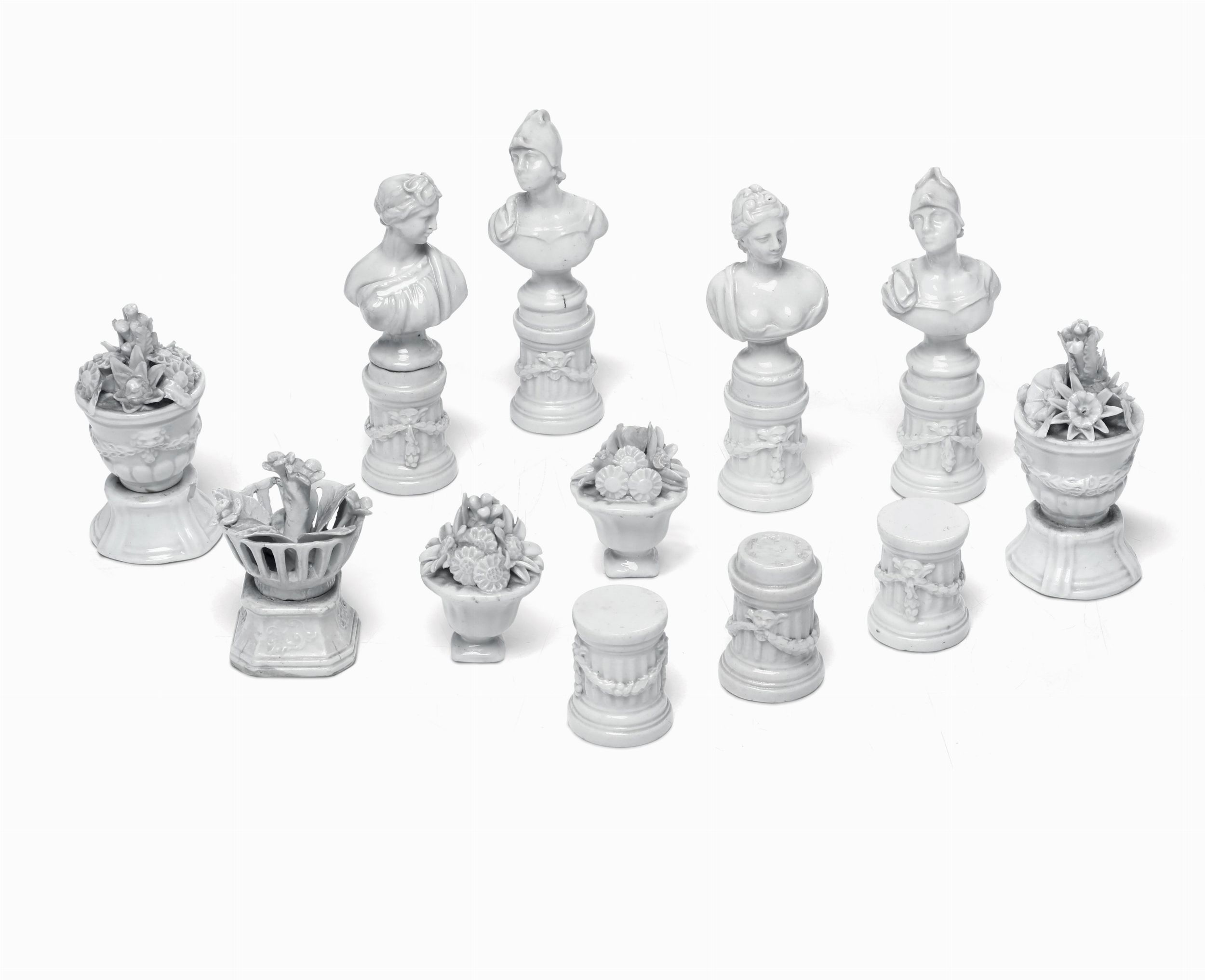 Quattro bustini e cinque vasetti su colonne