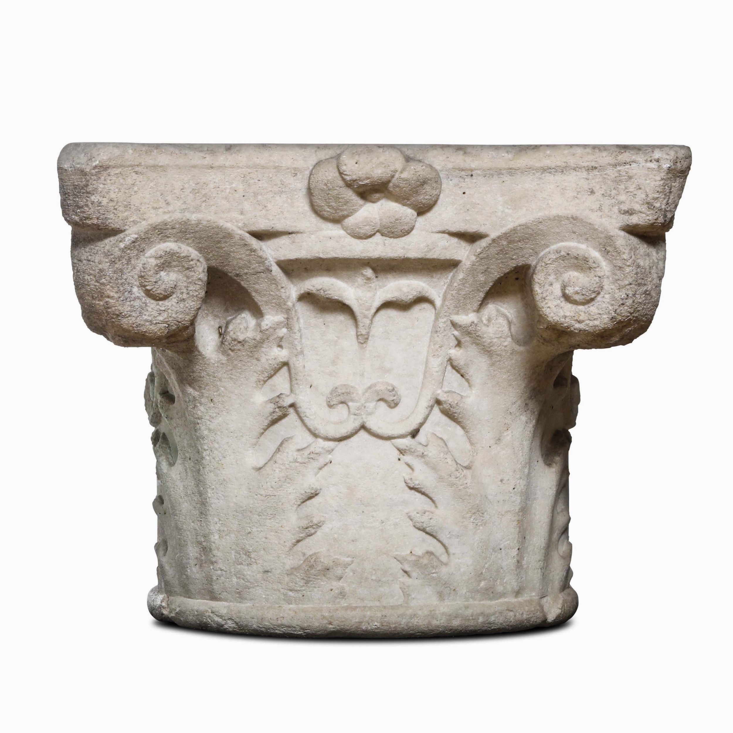 Due capitelli compositi. Lapicida rinascimentale, Italia XV-XVI secolo