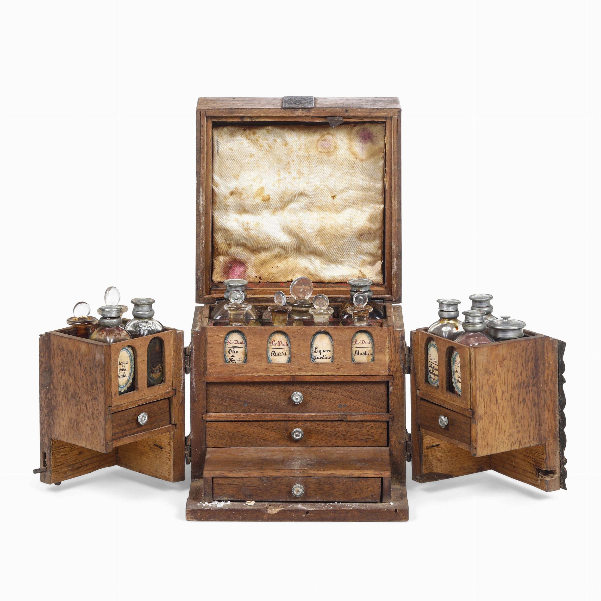 Farmacia da viaggio. Ebanisteria del XVIII-XIX secolo