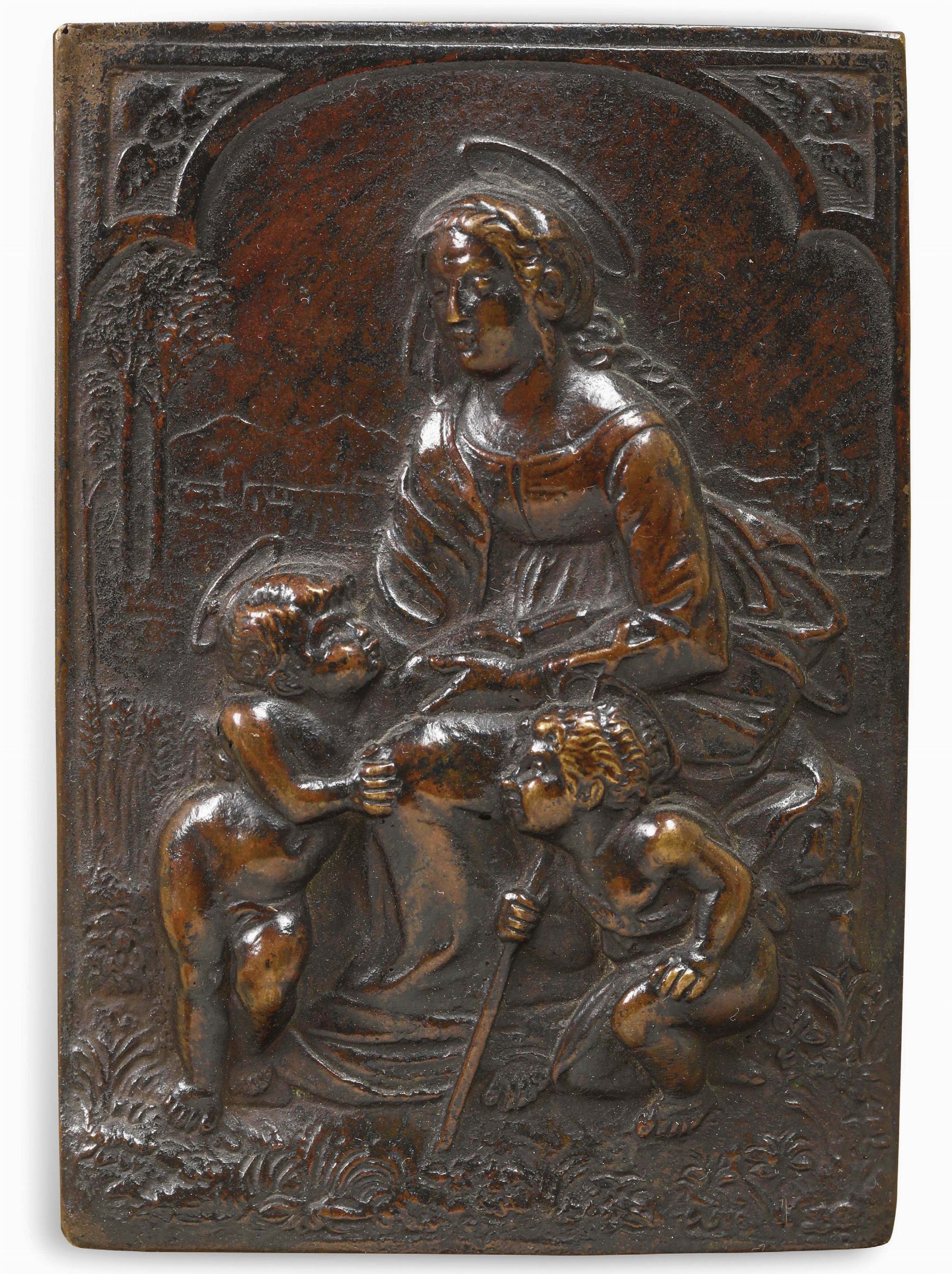 Placchetta raffigurante Madonna con Bambino e San Giovannino. Fonditore rinascimentale [..]