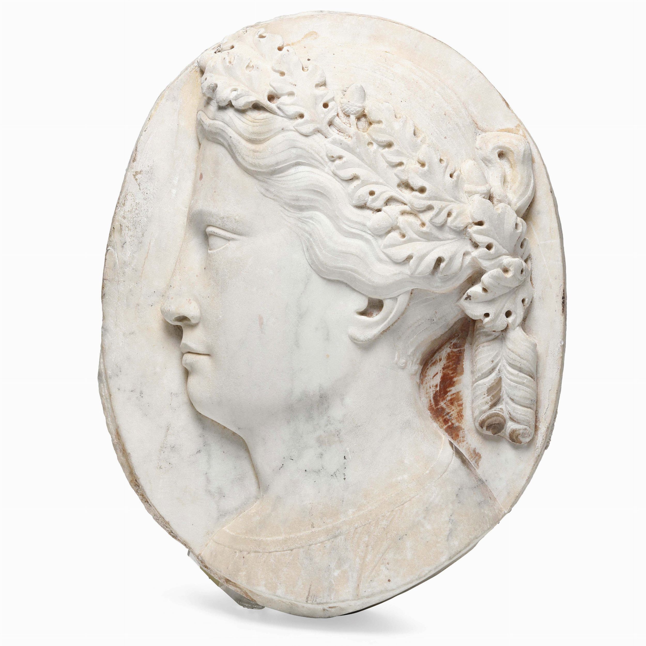Profilo femminile con serto di foglie di quercia. Arte neoclassica del XIX secol [..]