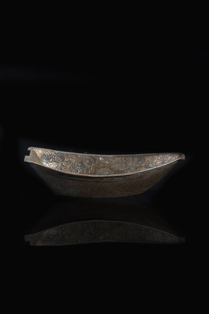 Barchetta in rame patinato finemente decorata con motivi floreali Giappone XIX [..]